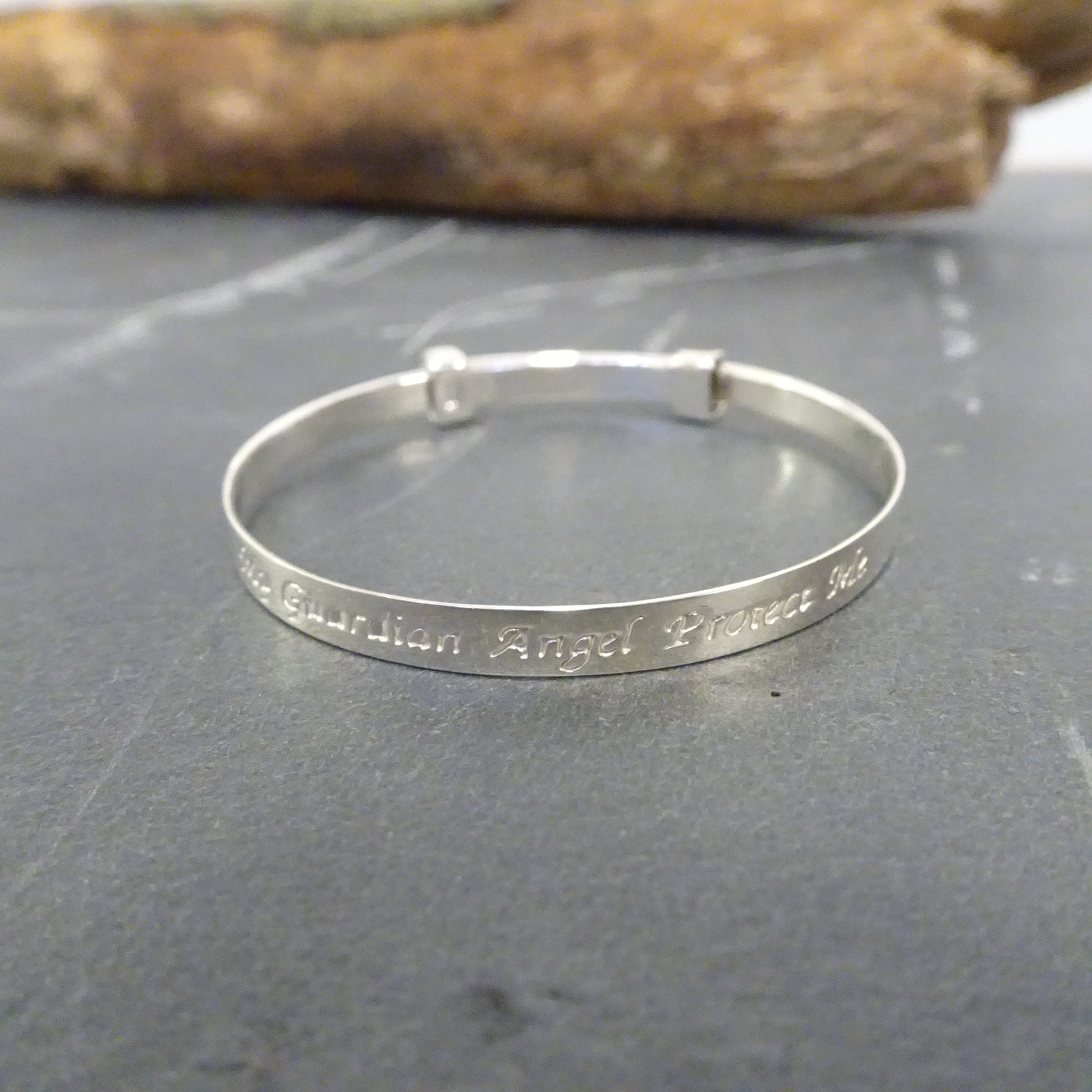Bracelet jonc réglable en argent sterling et cristal CZ transparent de 40 mm avec ange gardien pour bébé