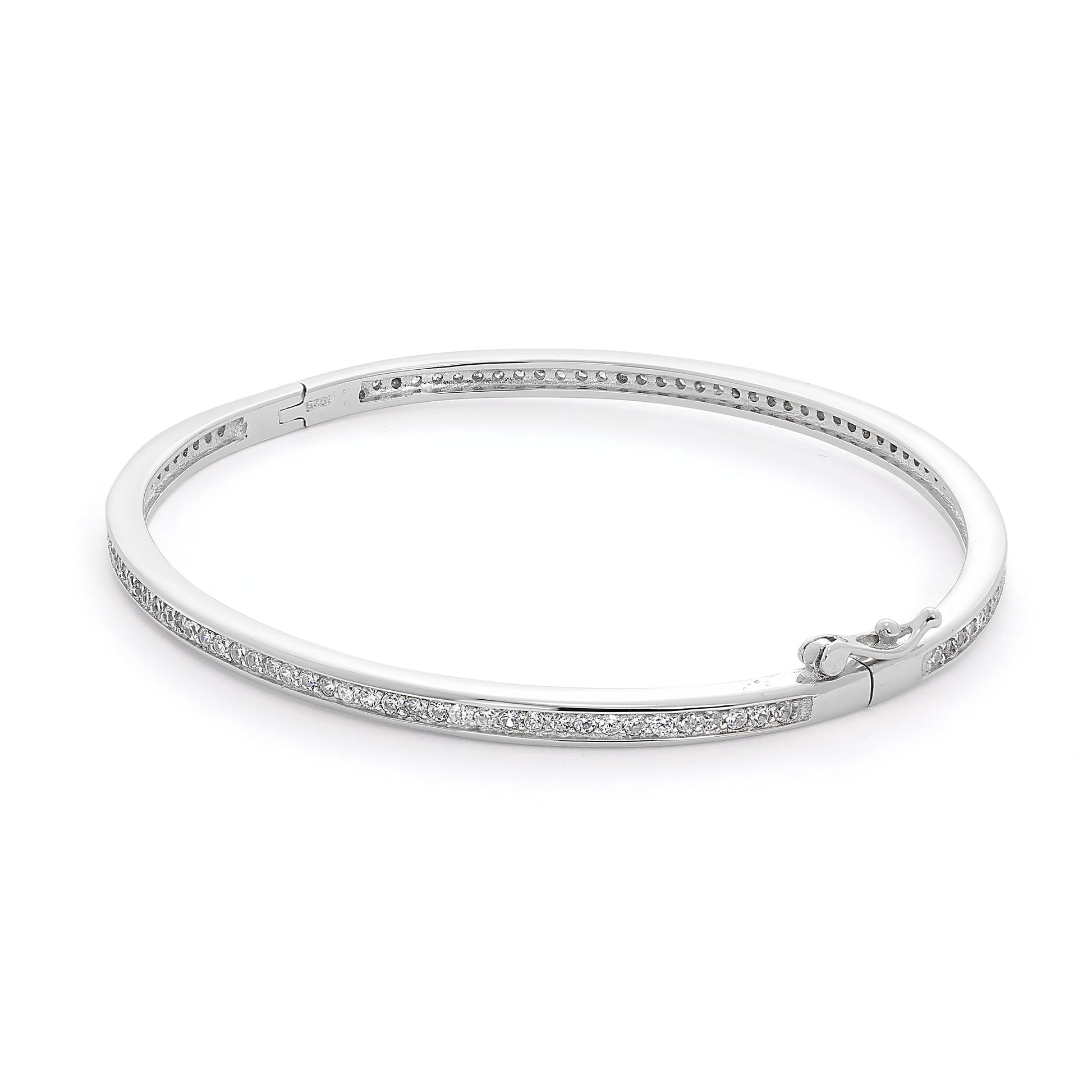 Bracelet jonc ovale à charnière en argent sterling et cristal CZ transparent