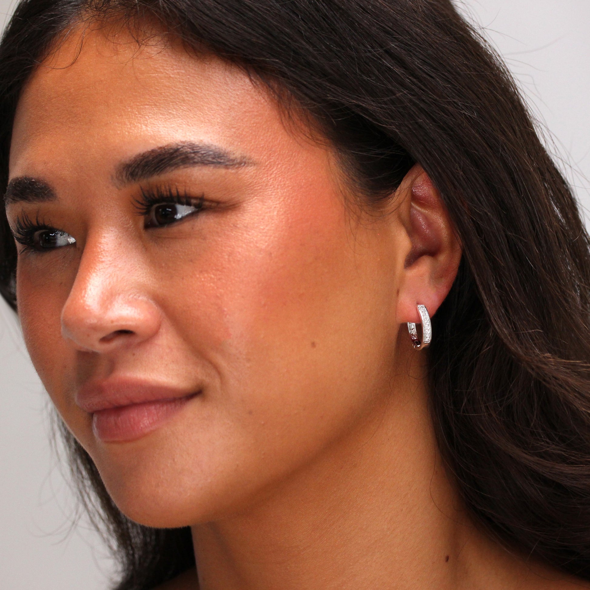 Boucles d'oreilles créoles en argent sterling avec zircones cubiques transparents de 15 mm