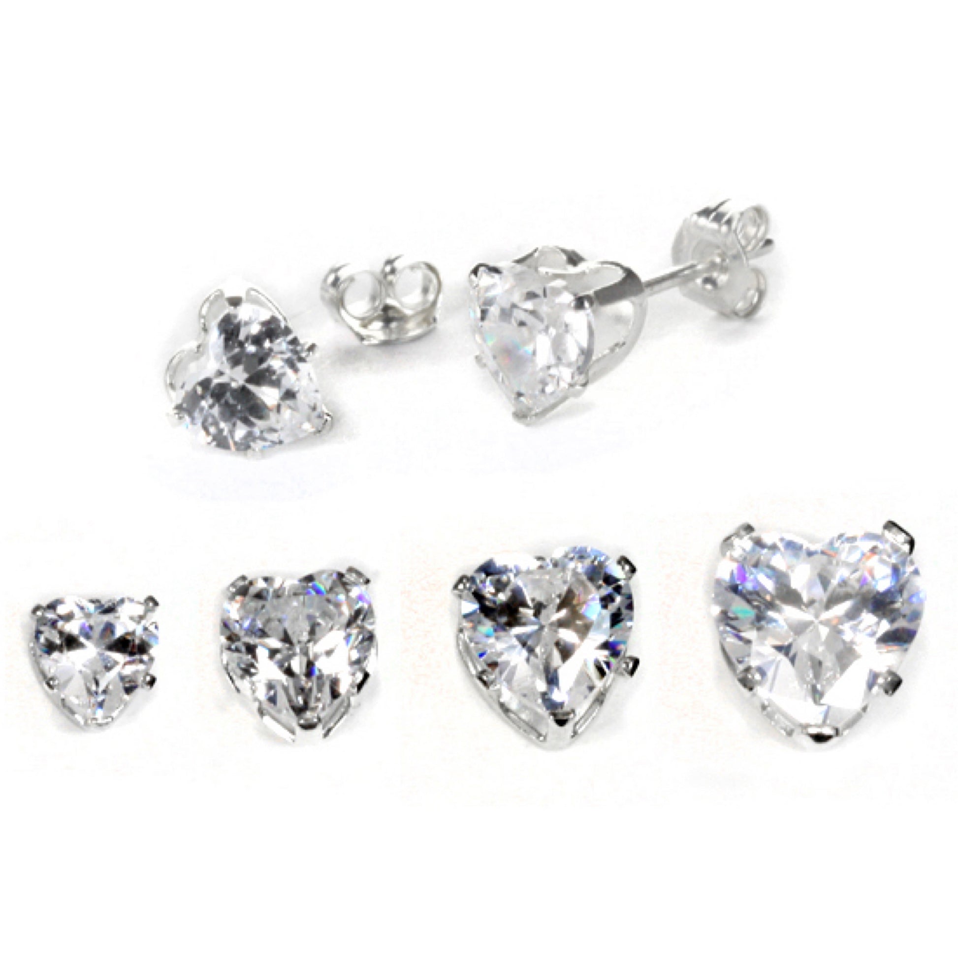 Boucles d'oreilles à tige en argent sterling avec cœur transparent en oxyde de zirconium