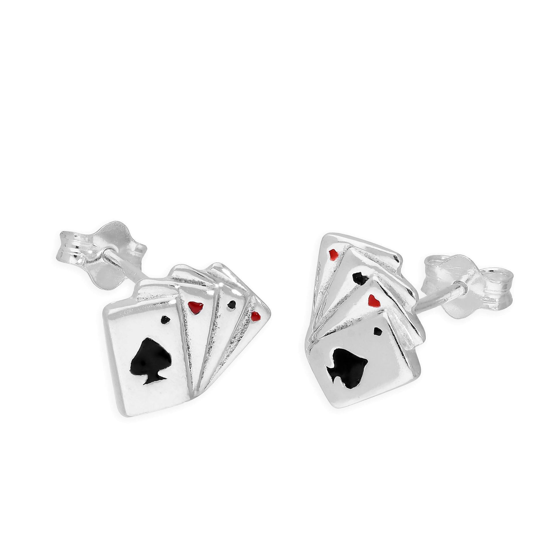 Boucles d'oreilles à tige en argent sterling et émail coloré As de pique