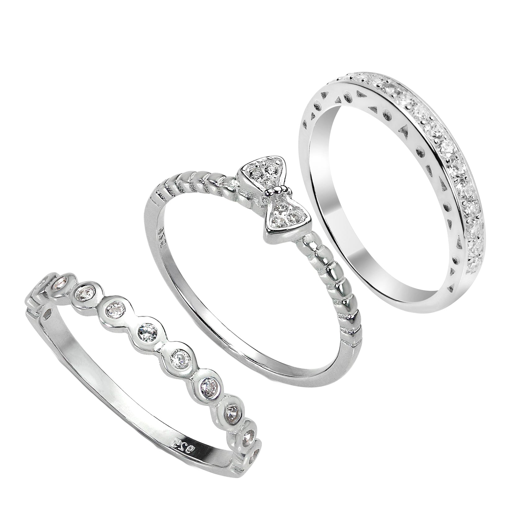 Ensemble de bagues empilables en argent sterling avec nœud en zircone cubique et éternité