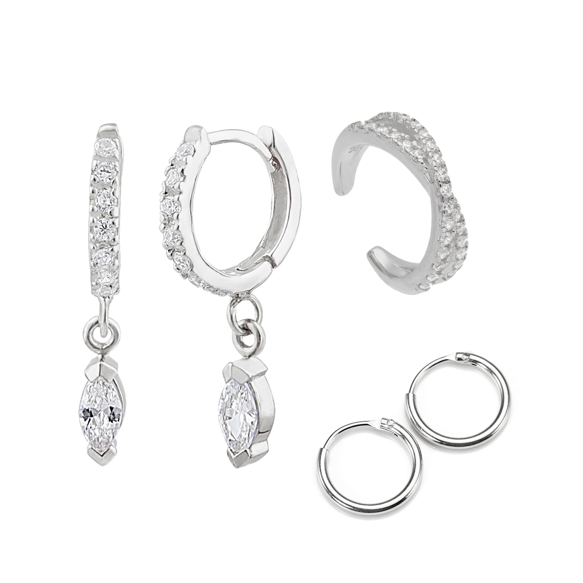 Ensemble de boucles d'oreilles créoles et manchettes croisées en argent sterling avec breloques en zircone cubique