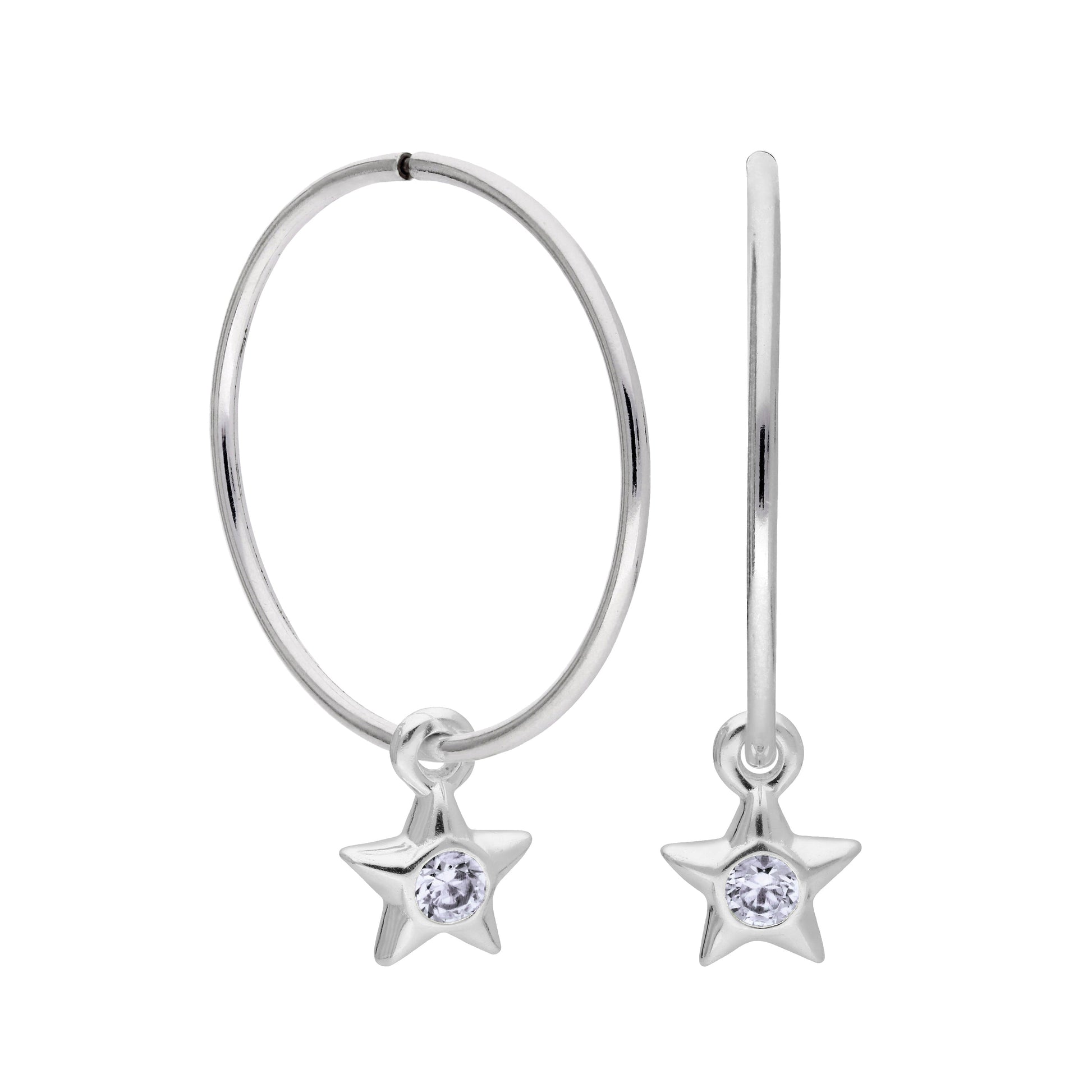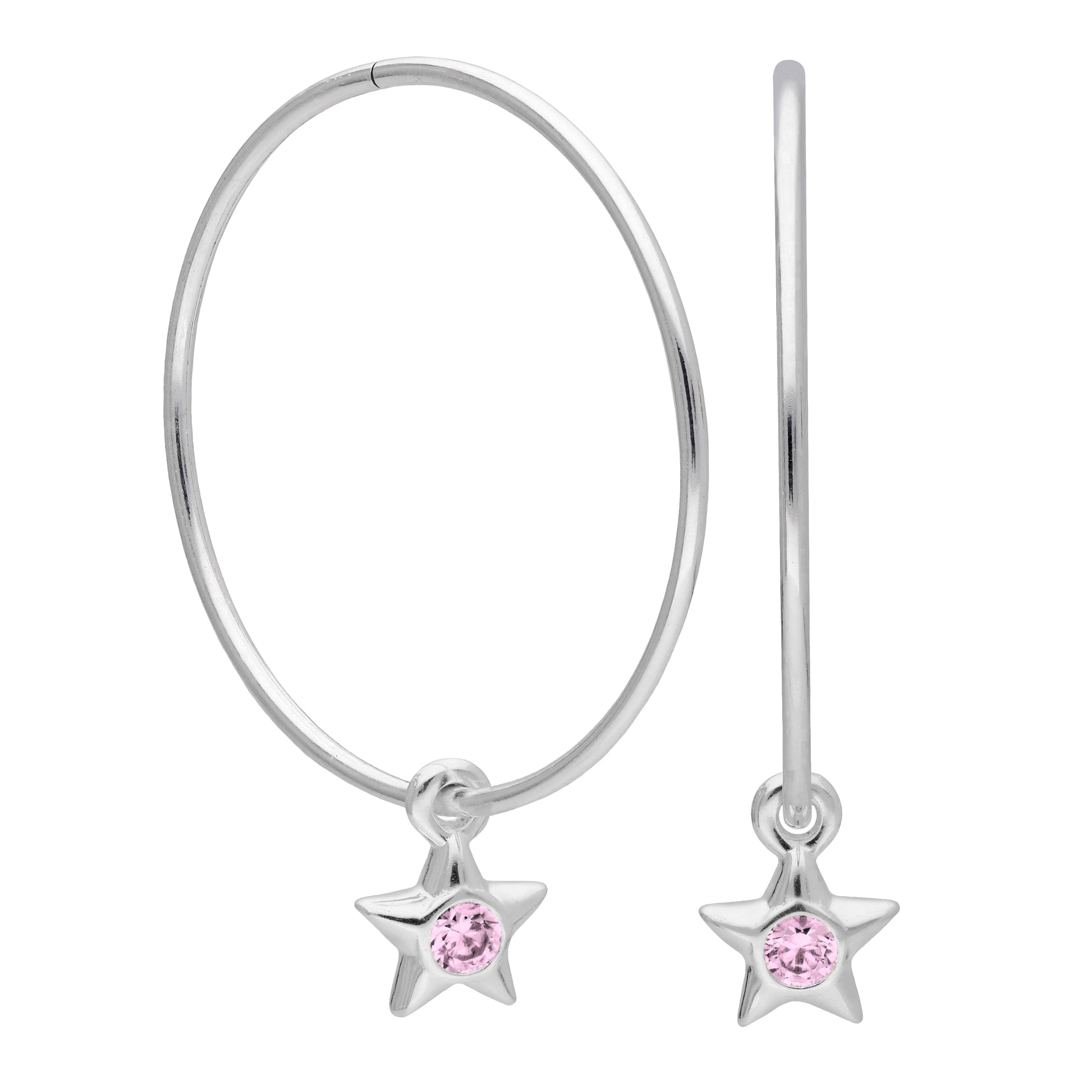 Boucles d'oreilles créoles dormeuses en argent sterling avec pierre de naissance en cristal CZ, 10 à 22 mm
