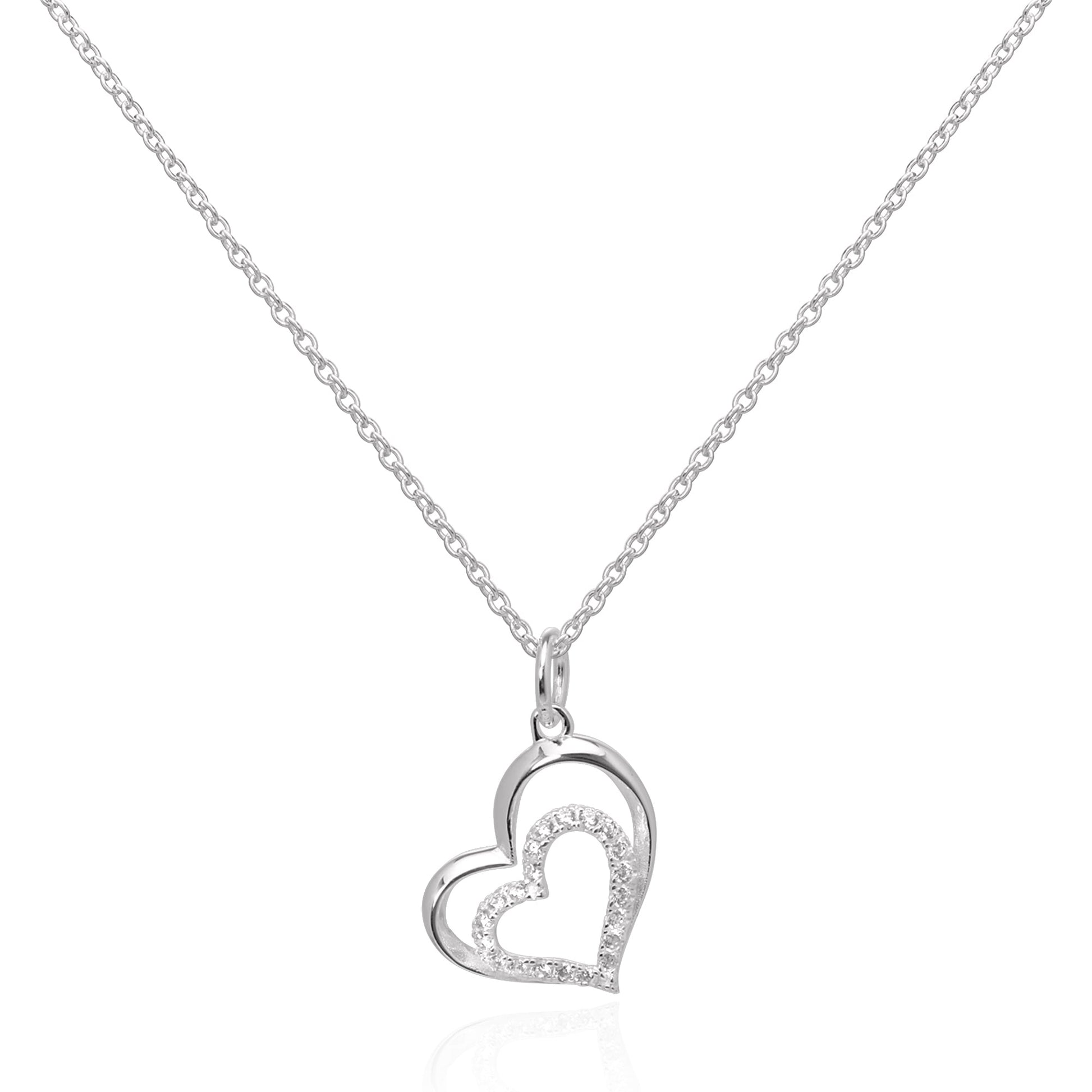 Collier avec pendentif double cœur ouvert en argent sterling et cristal CZ, 40 à 55 cm