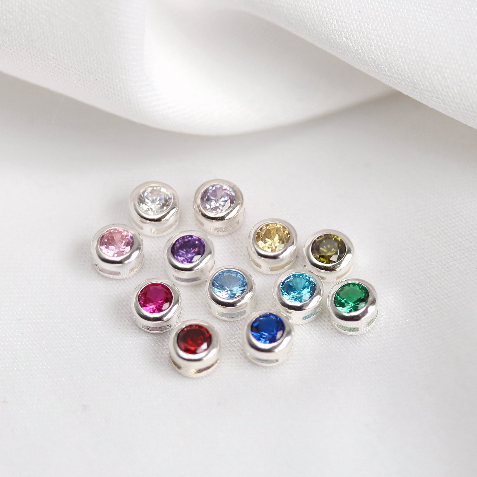Breloques flottantes en argent sterling et cristal CZ avec pierre de naissance