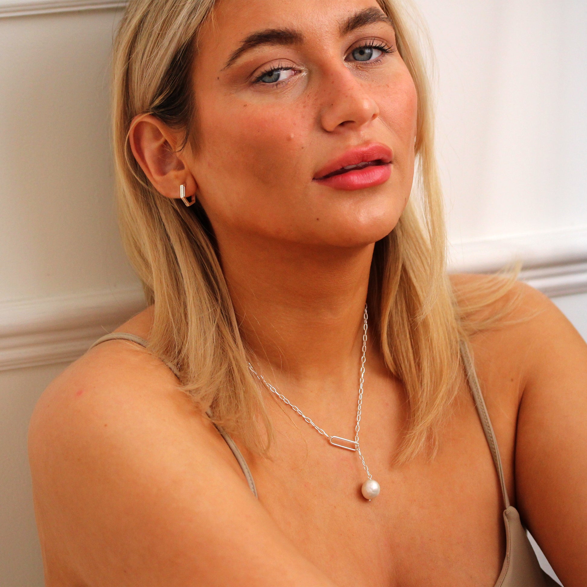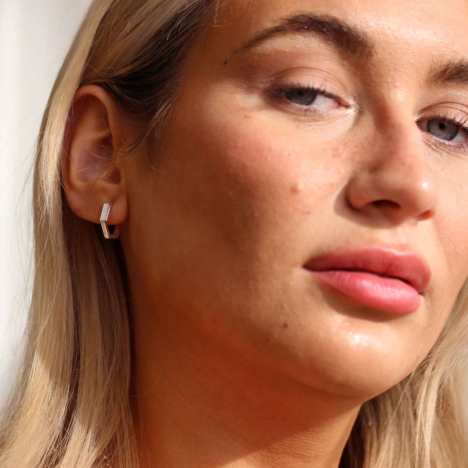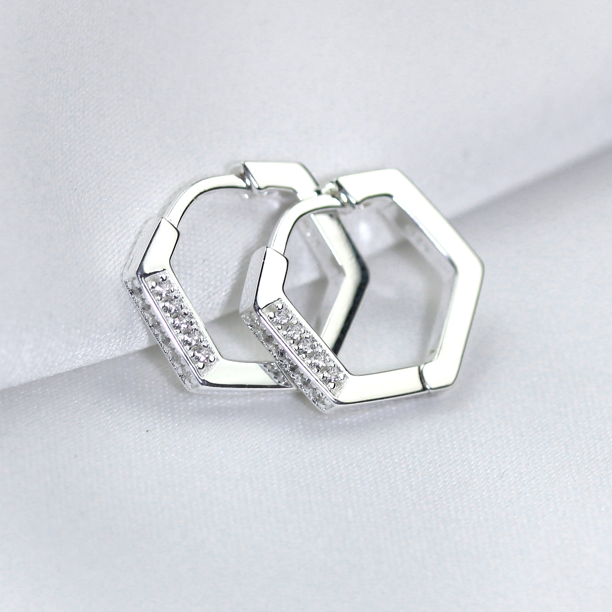 Boucles d'oreilles créoles pentagonales en argent sterling incrustées de zircones cubiques de 14 mm