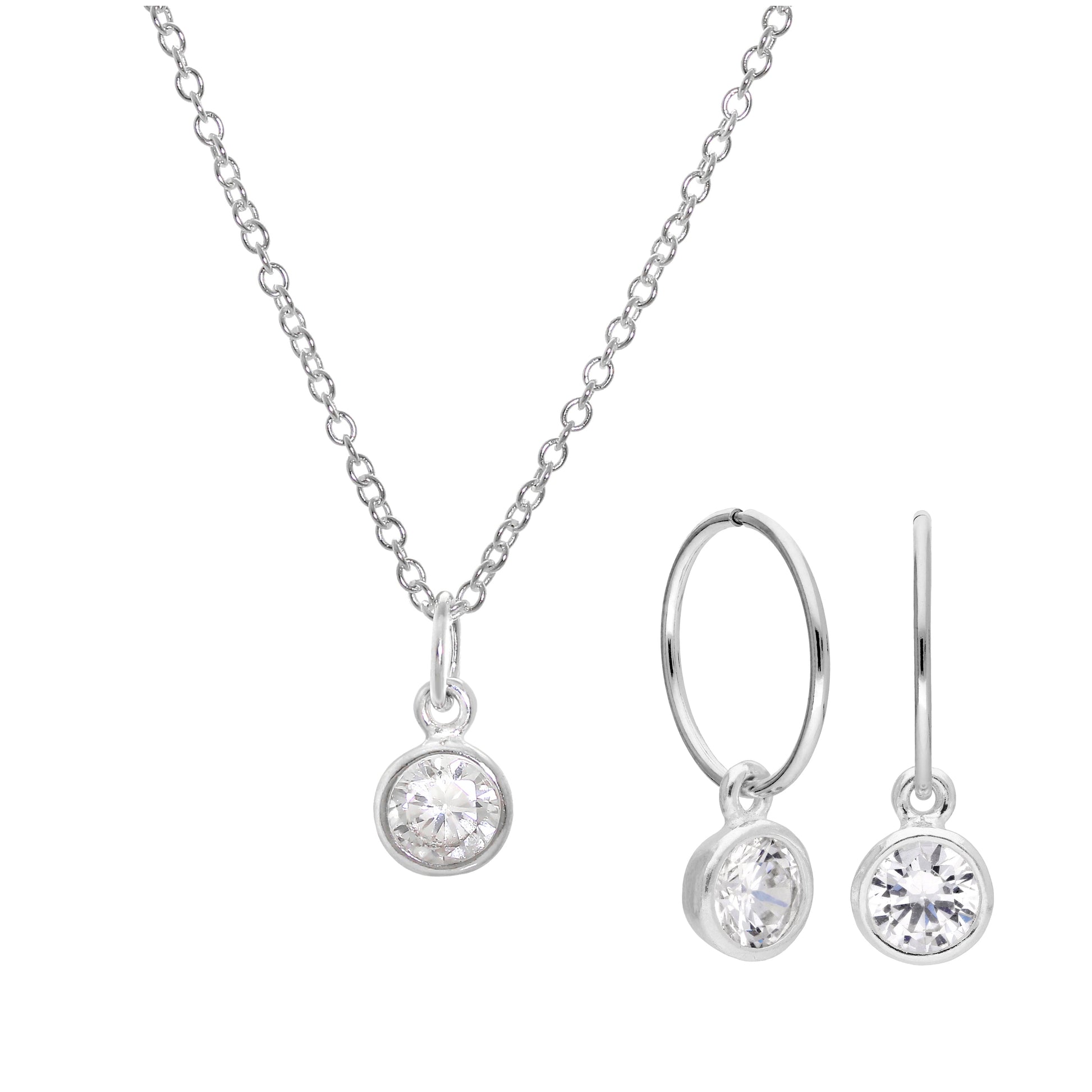 Ensemble de boucles d'oreilles créoles et collier en argent sterling avec zircones cubiques de 12 mm, 40 à 81 cm