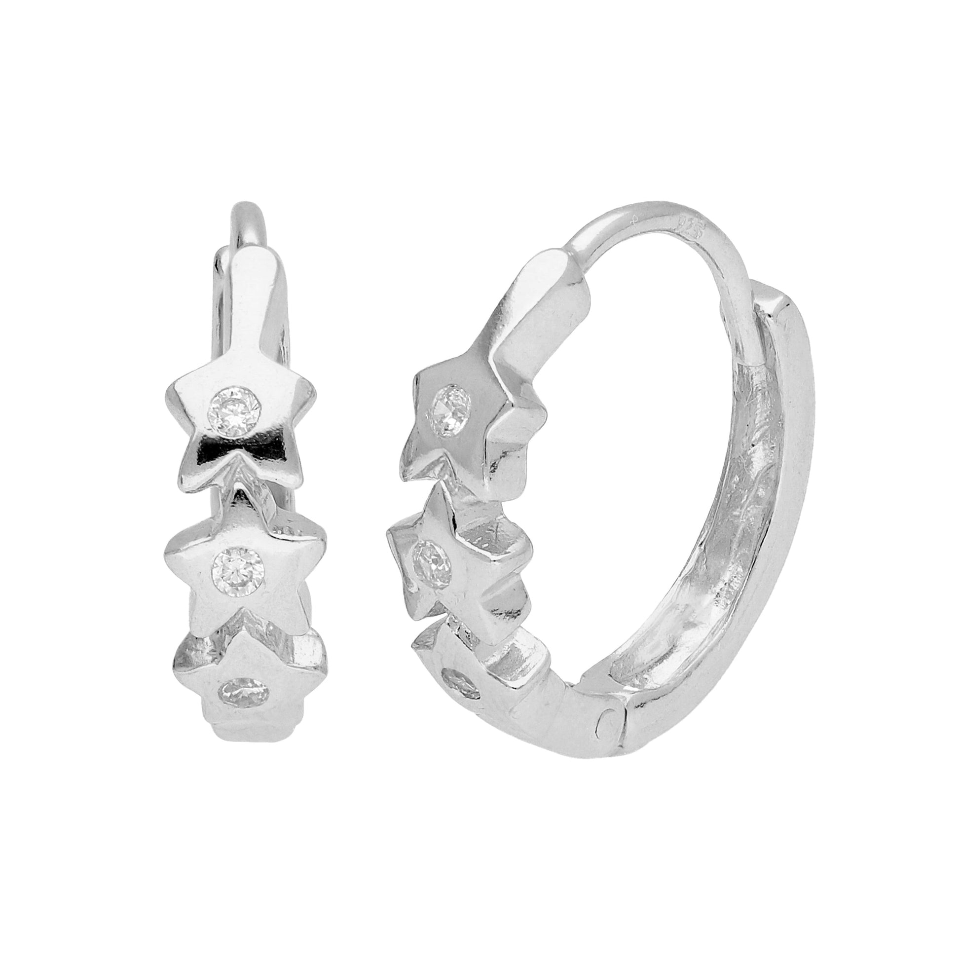 Boucles d'oreilles créoles triple étoile en argent sterling et zircone cubique de 17 mm