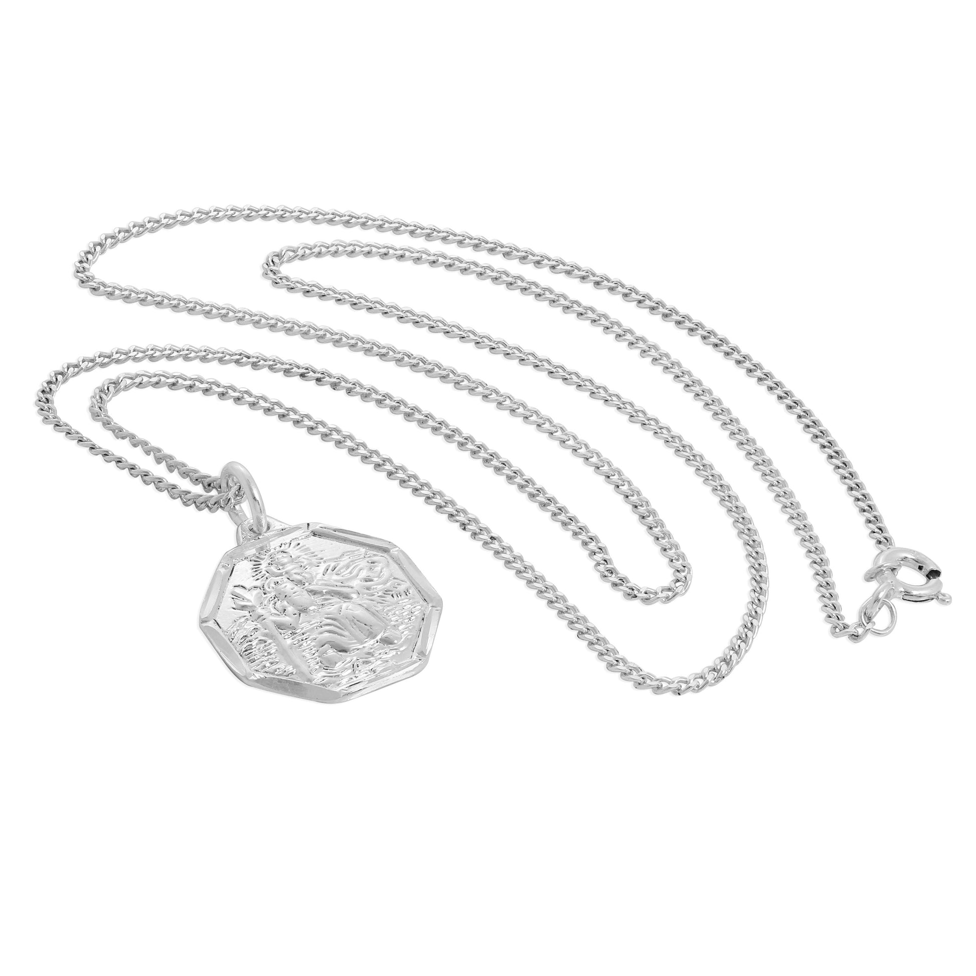 Collier octogonal en argent sterling avec pendentif Saint-Christophe taillé en diamant, 40 à 61 cm