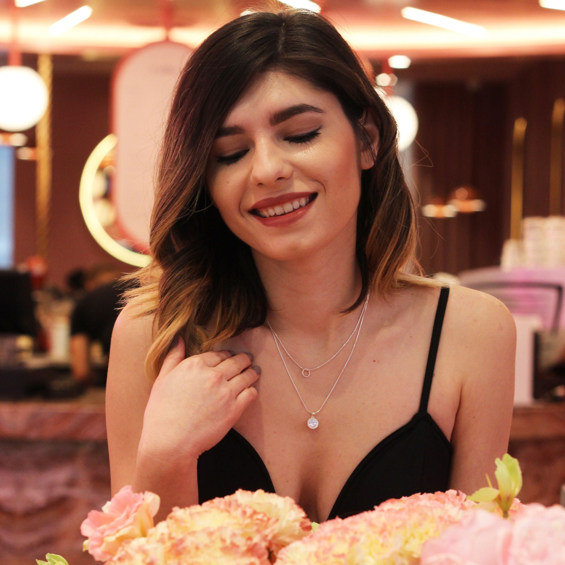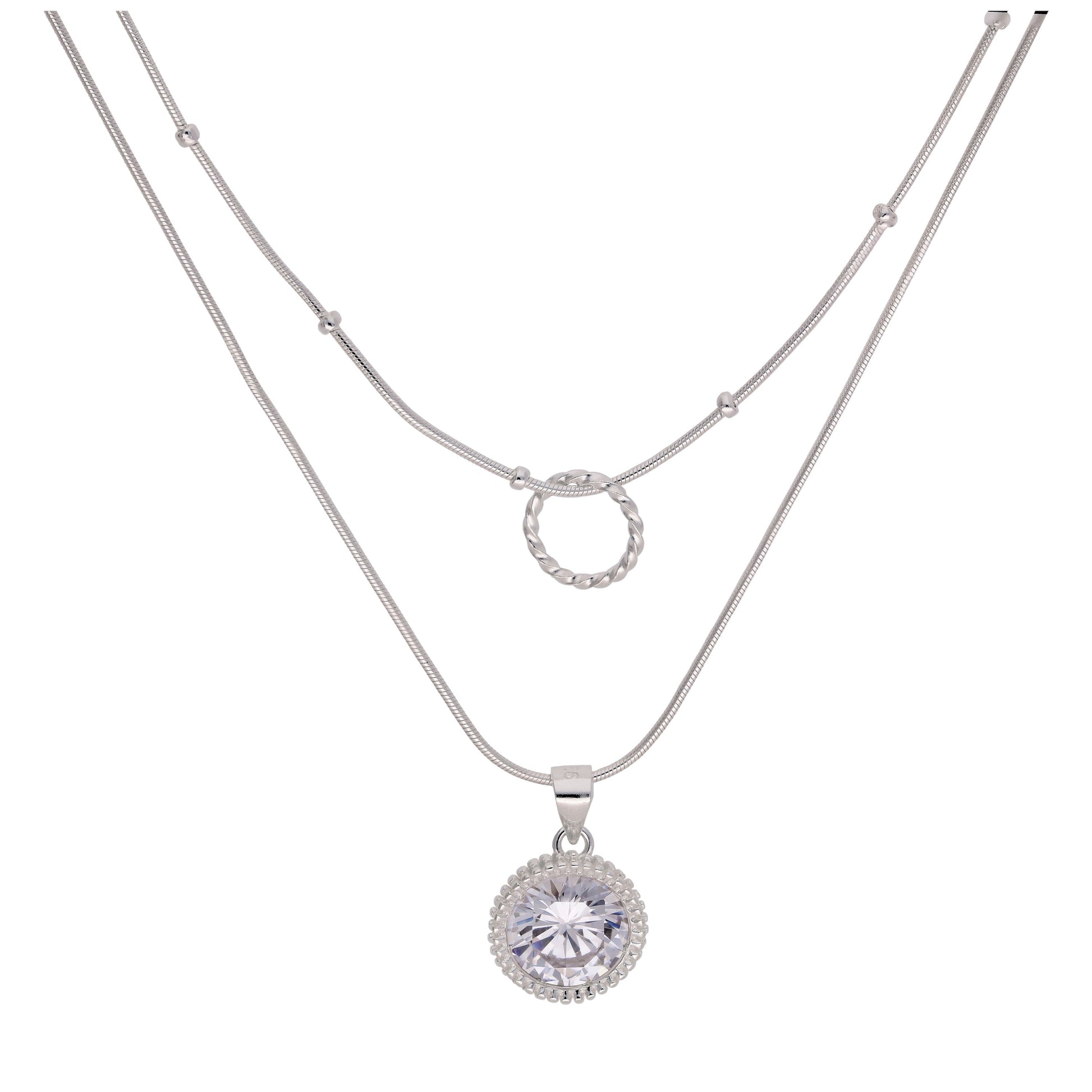 Collier en argent sterling avec double couche de zircons cubiques et anneau torsadé