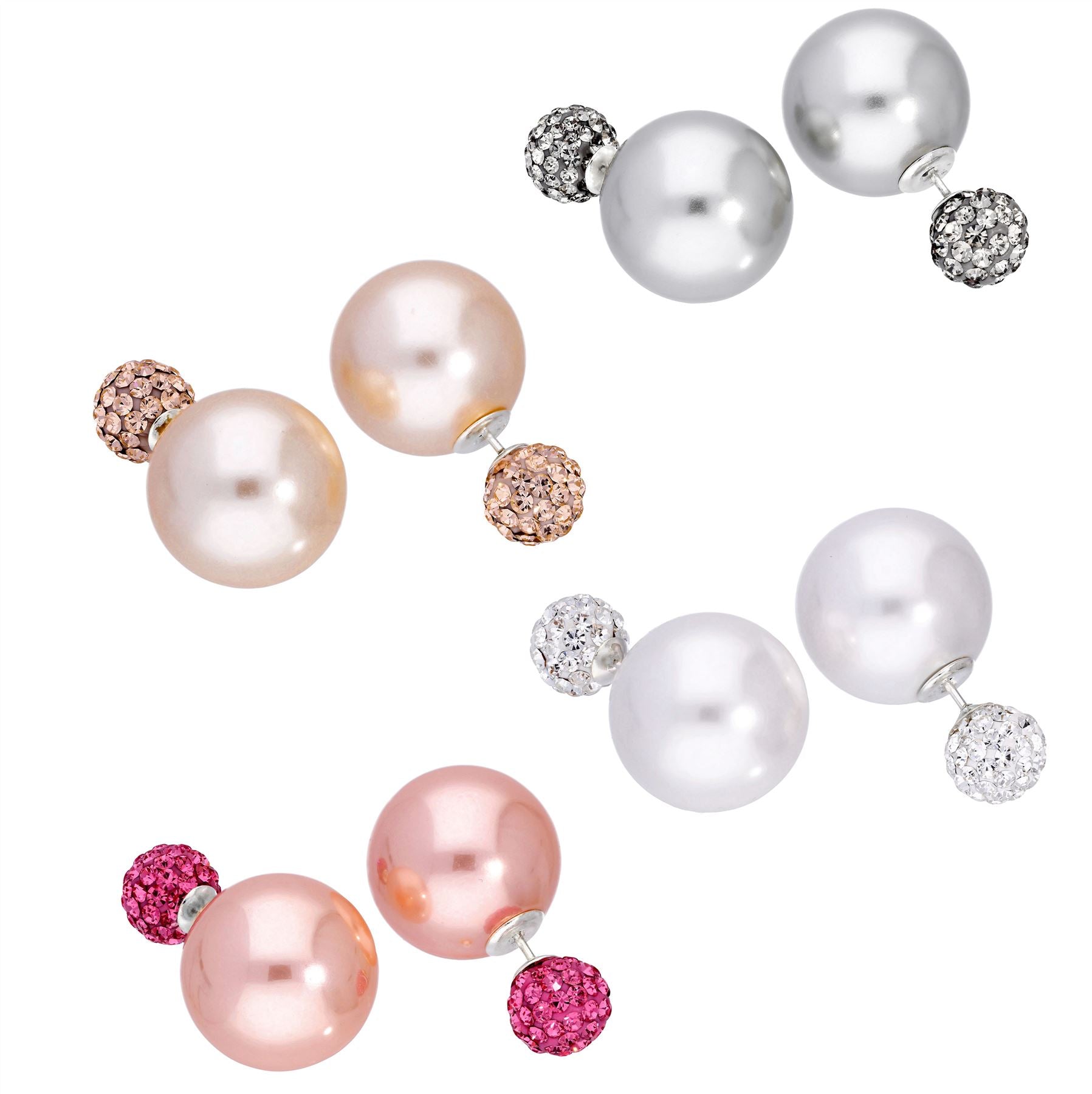 Boucles d'oreilles à tige en argent sterling avec perles double face et zircones cubiques, blanc crème, pêche et gris