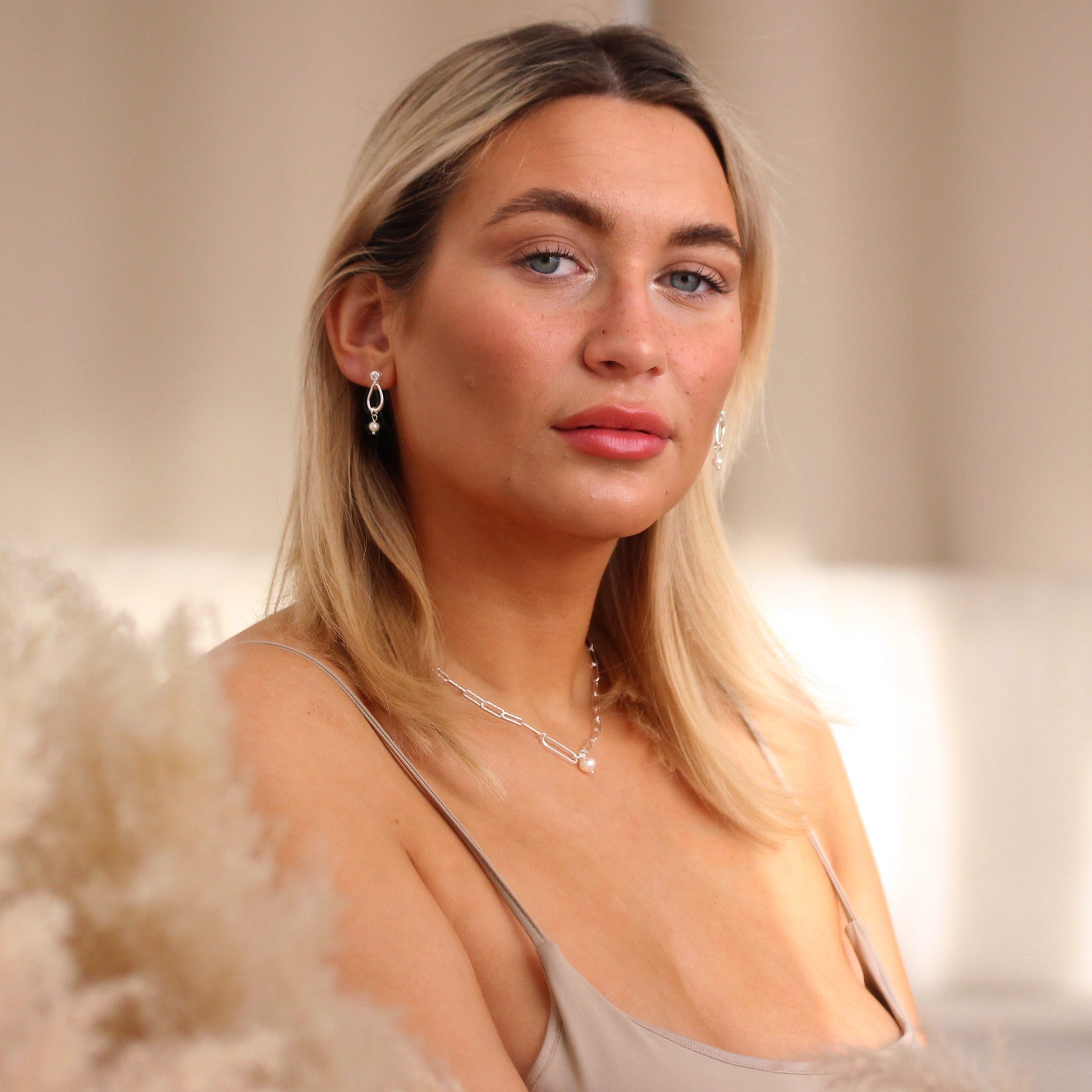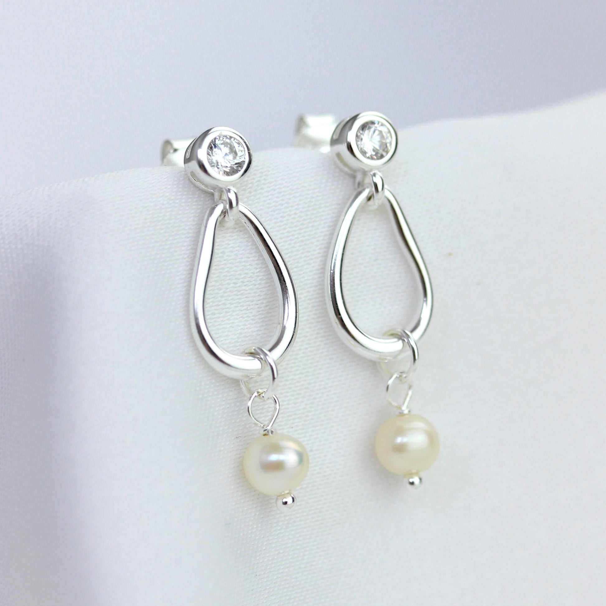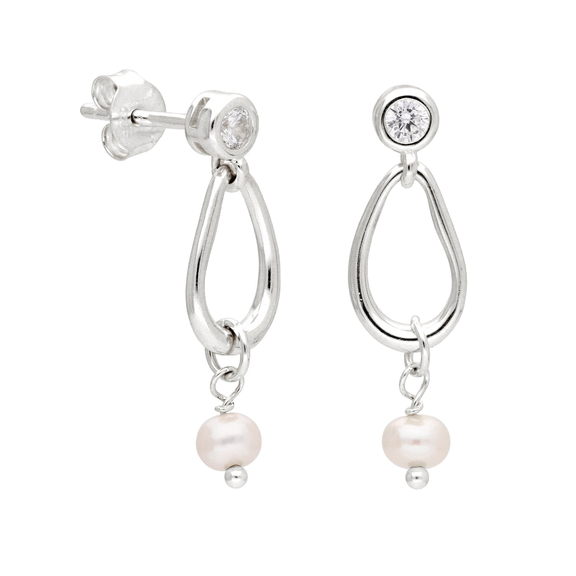 Boucles d'oreilles pendantes en argent sterling avec perles d'eau douce et zircones cubiques