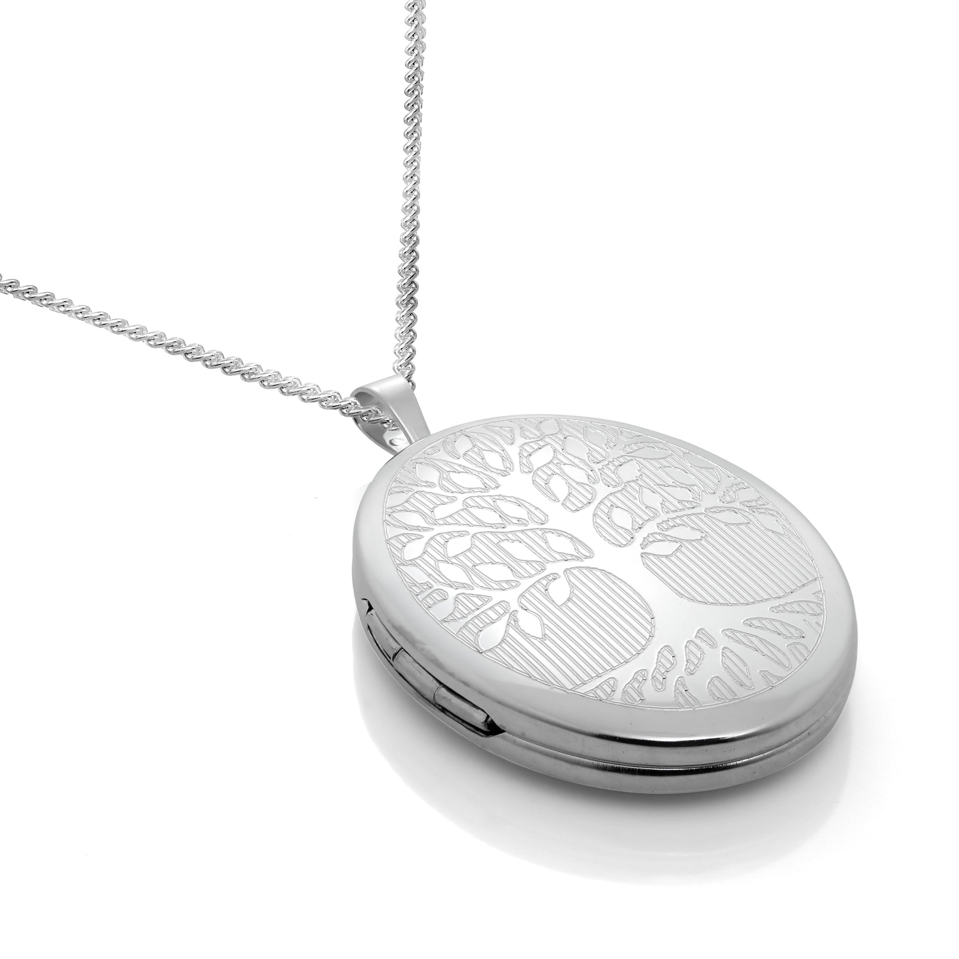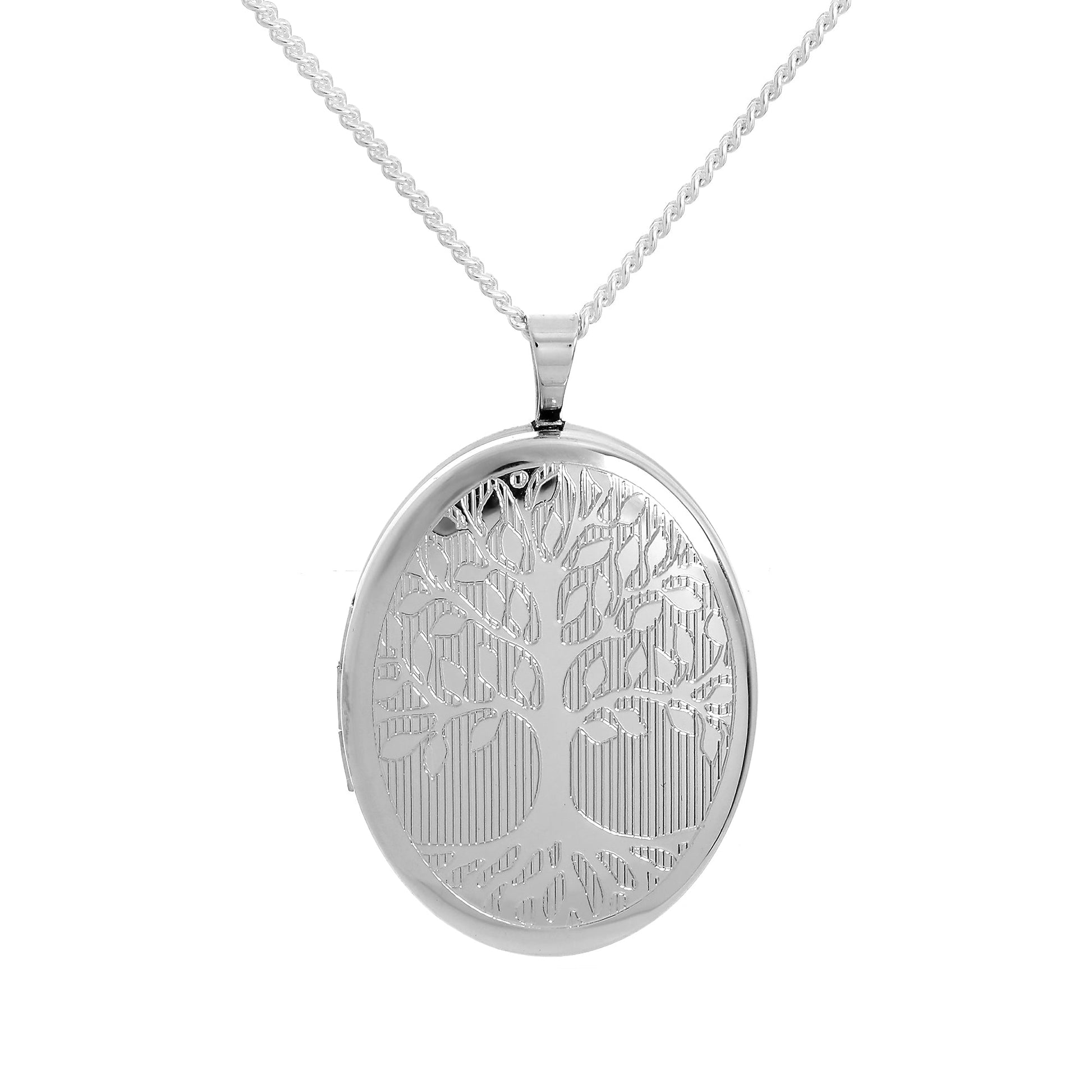 Médaillon ovale en argent sterling gravé arbre de vie sur chaîne