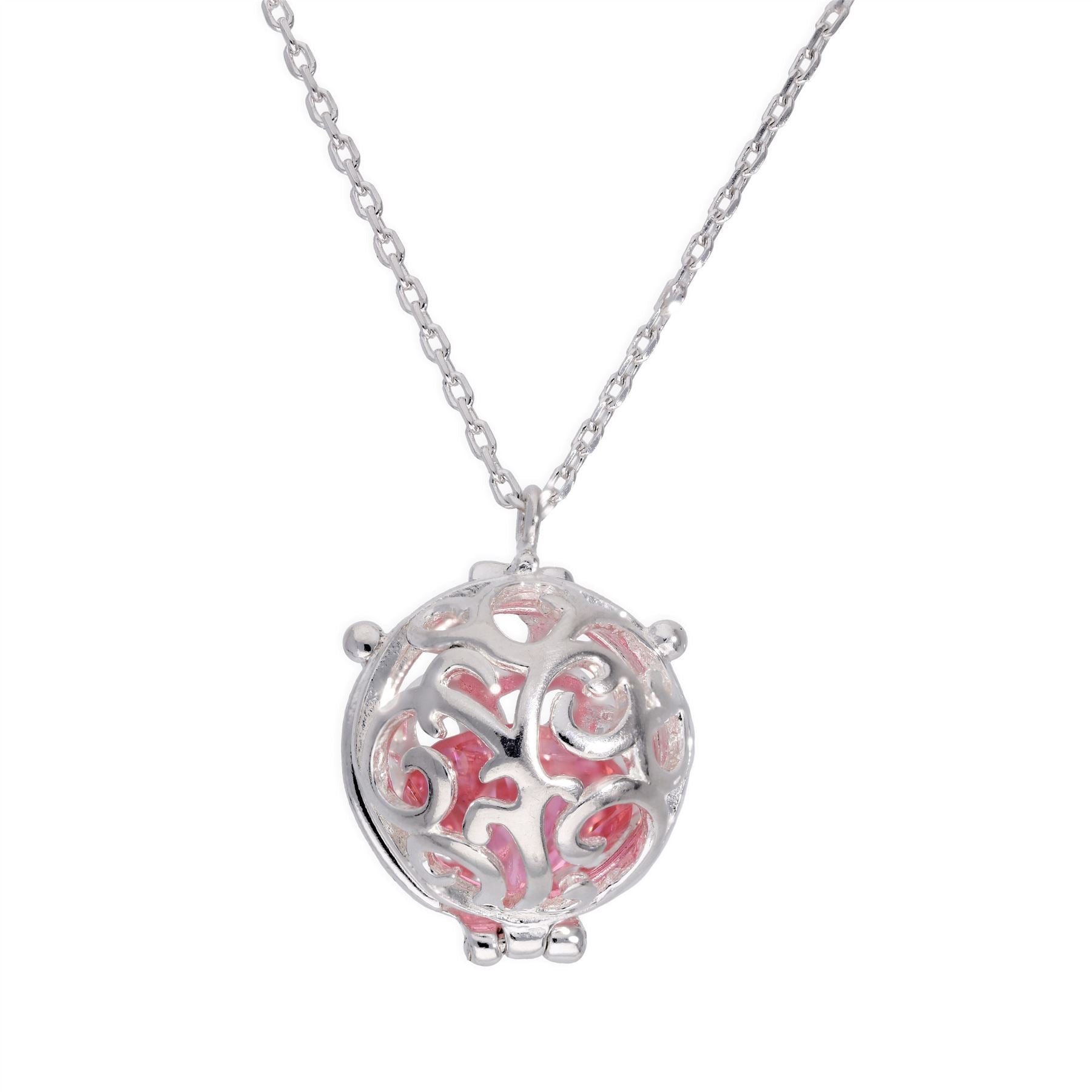 Médaillon sphérique en filigrane d'argent sterling avec cristal CZ rose