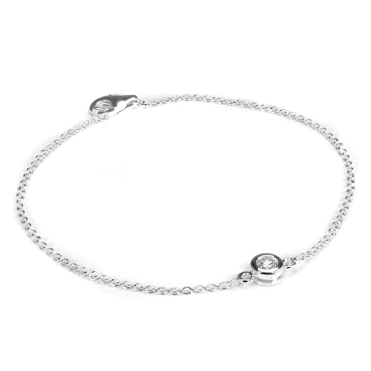 Bracelet Belcher fin en argent sterling avec cristal CZ rond et fermoir