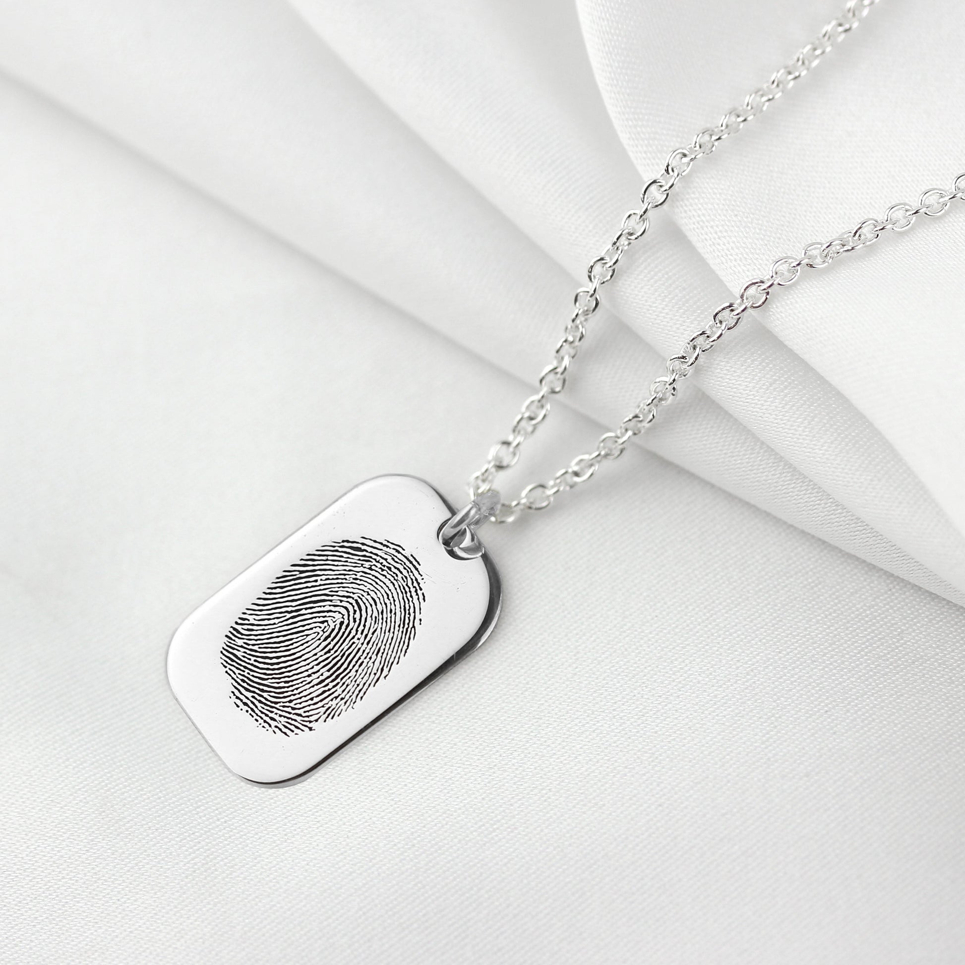 Collier en argent sterling avec plaque d'identité pour chien et empreinte digitale