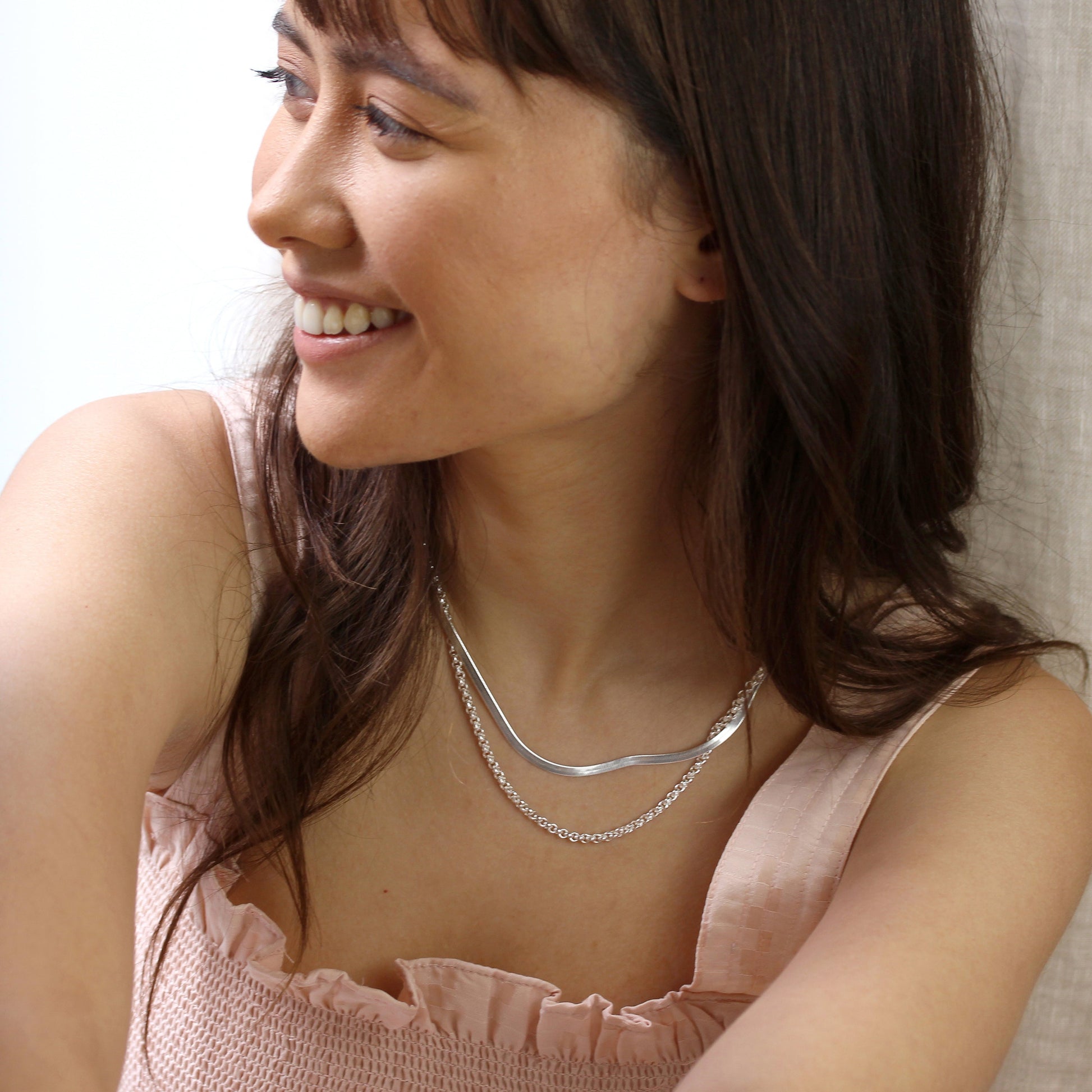 Collier chaîne à chevrons plats en argent sterling de 45 à 50 cm