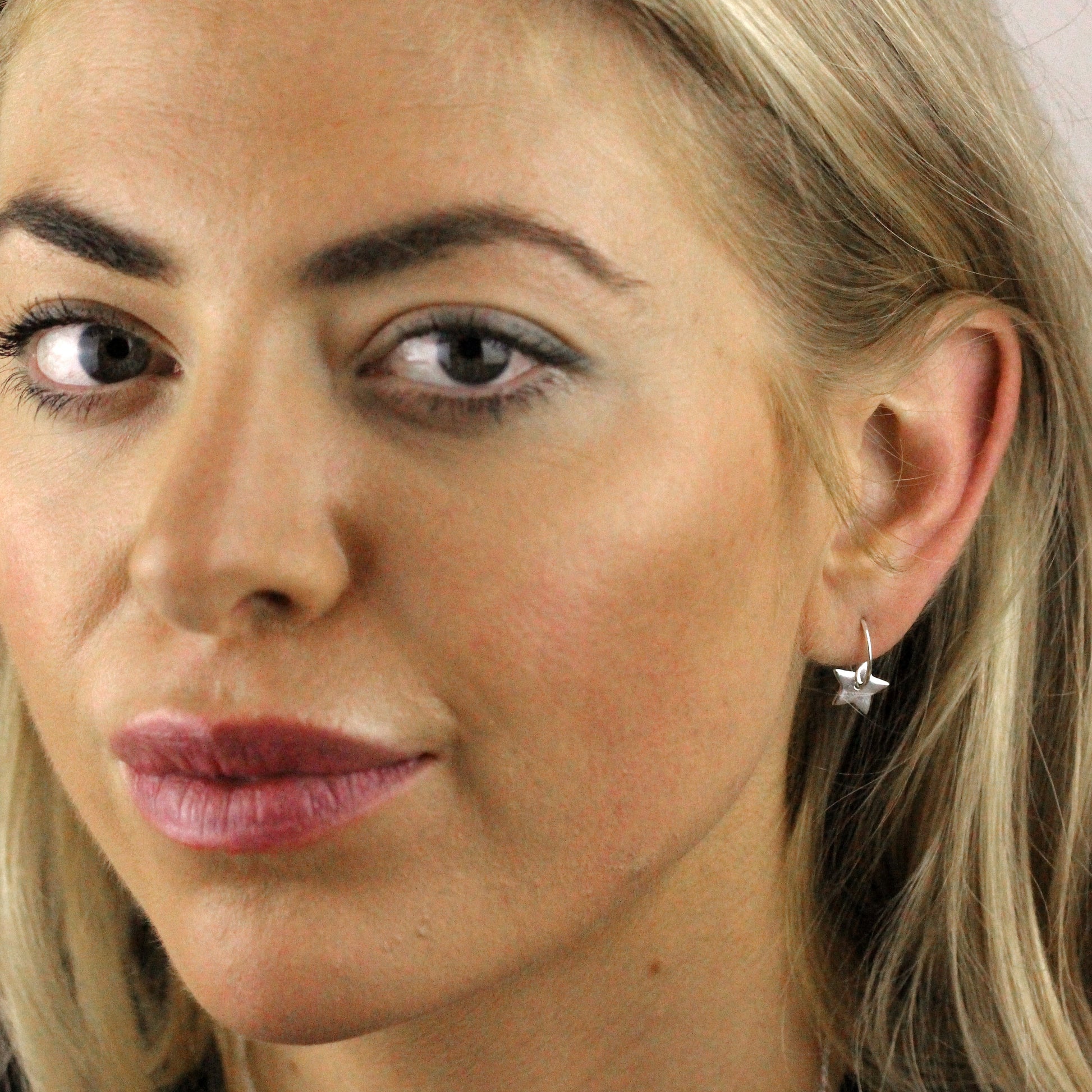Boucles d'oreilles créoles en argent sterling avec breloque étoile flottante de 12 mm
