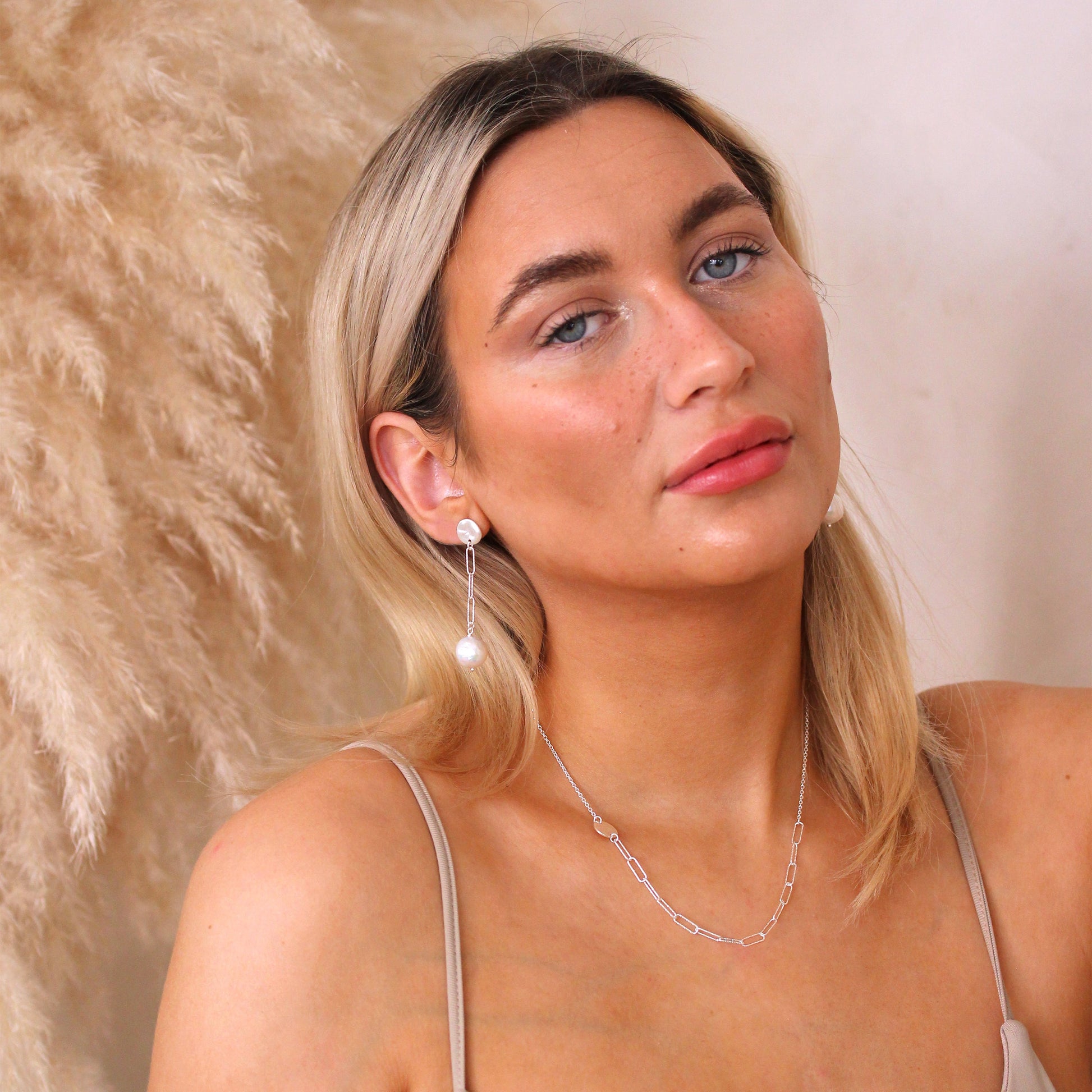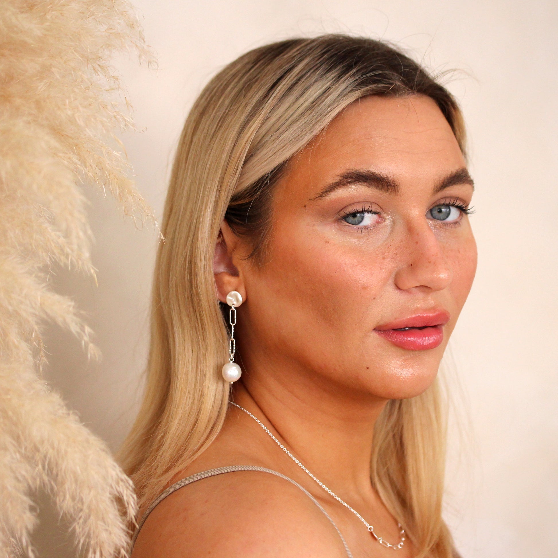 Boucles d'oreilles pendantes en argent sterling avec perles d'eau douce baroques