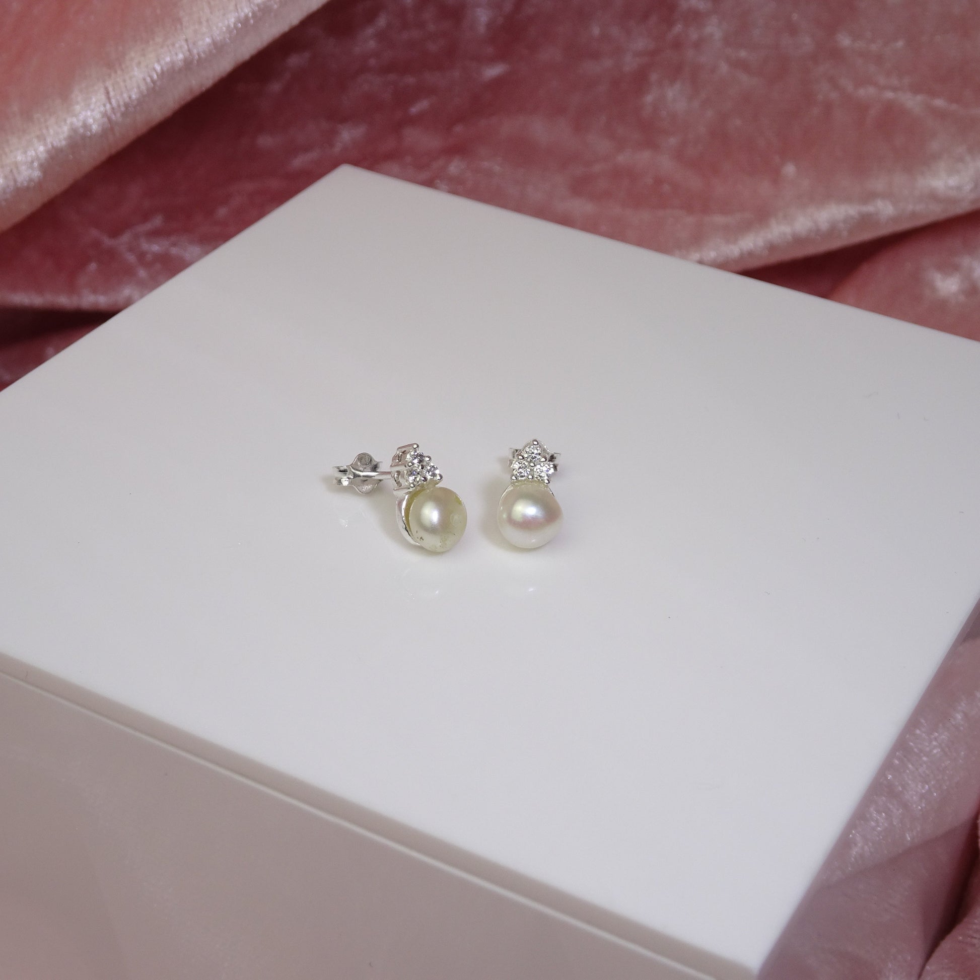 Boucles d'oreilles à tige en argent sterling avec perles synthétiques et zircones cubiques transparents