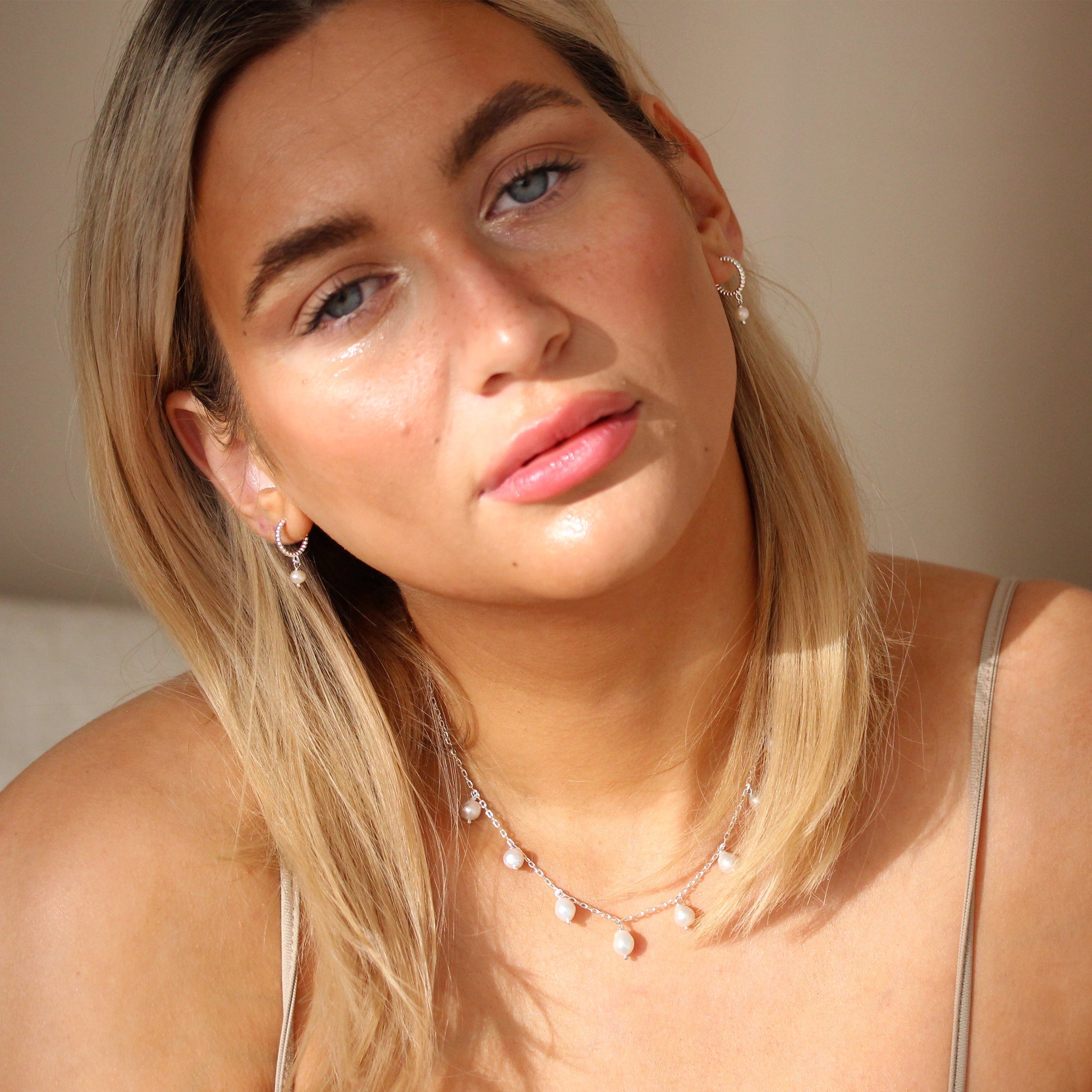 Boucles d'oreilles créoles en argent sterling avec perles d'eau douce
