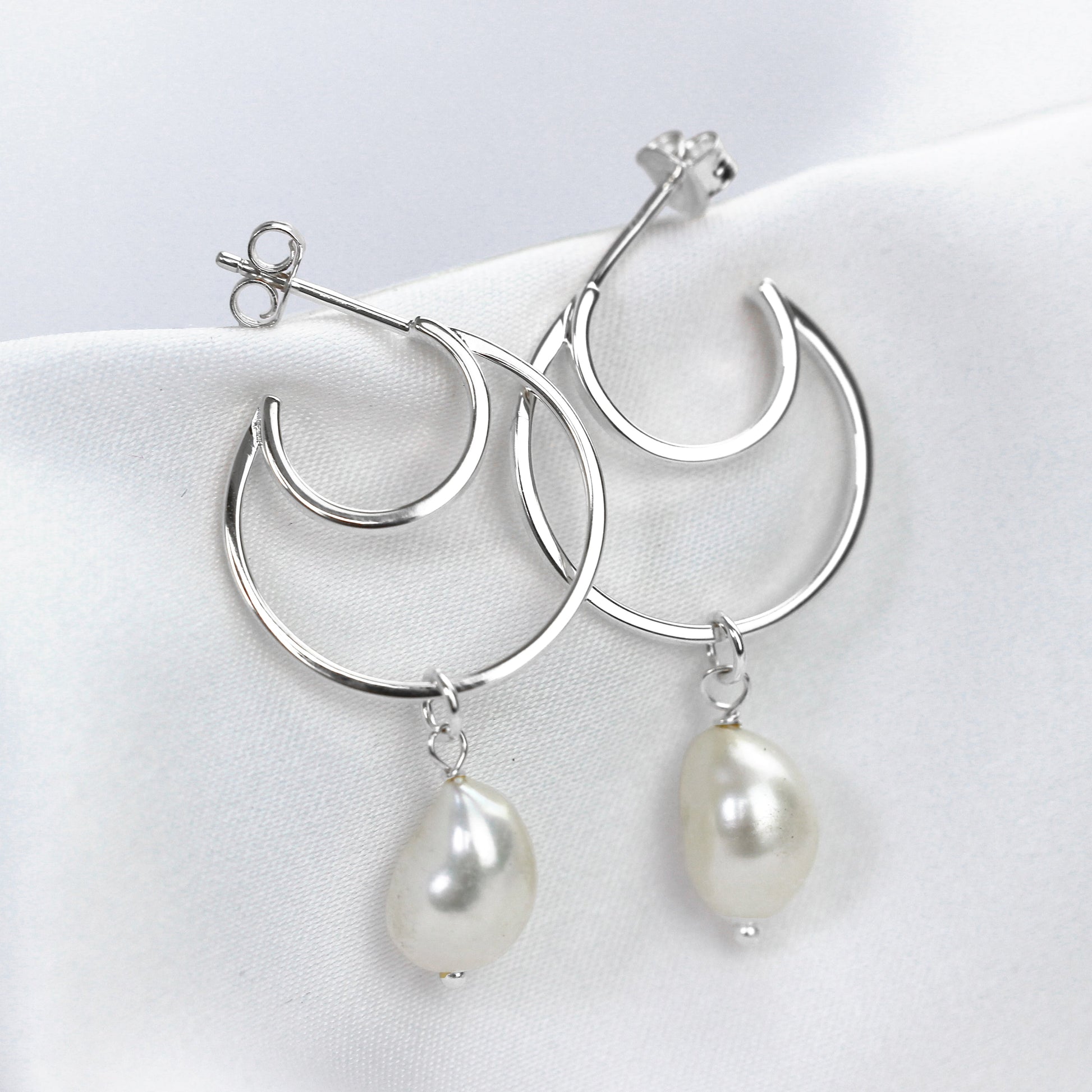 Boucles d'oreilles créoles en argent sterling avec perles d'eau douce