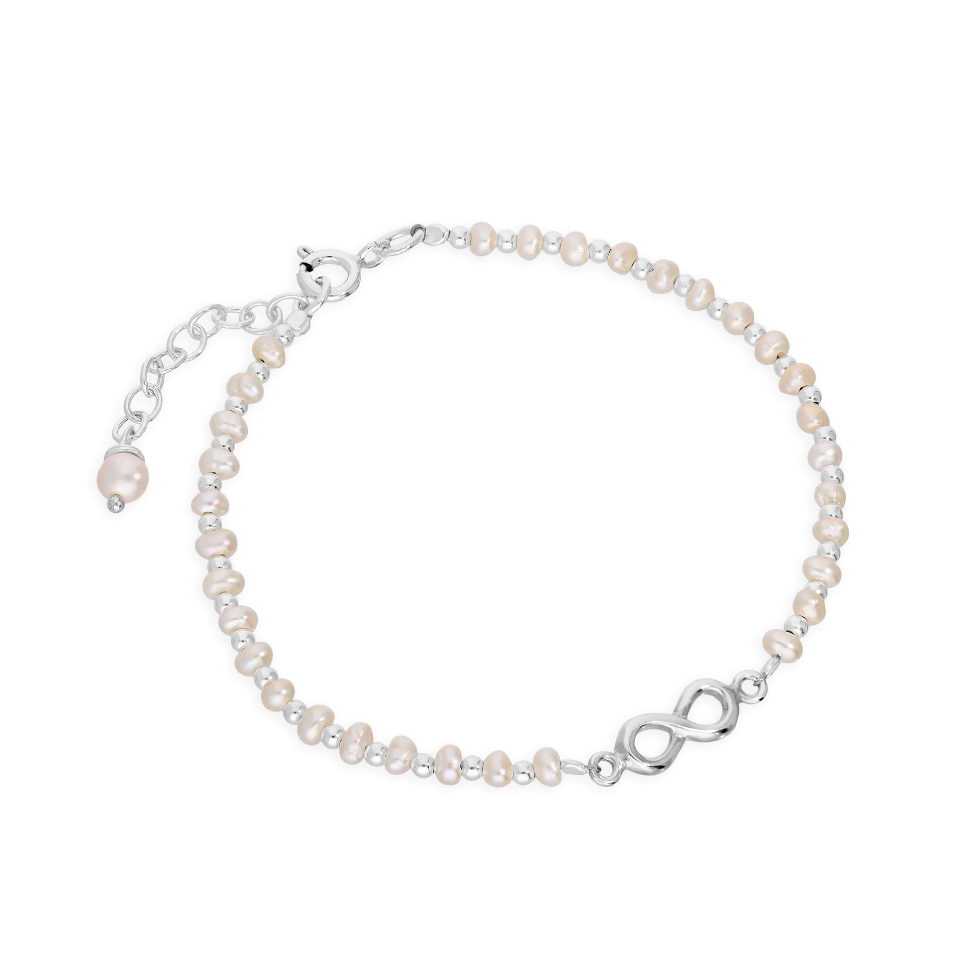 Bracelet symbole infini en argent sterling et perles d'eau douce, 20 cm