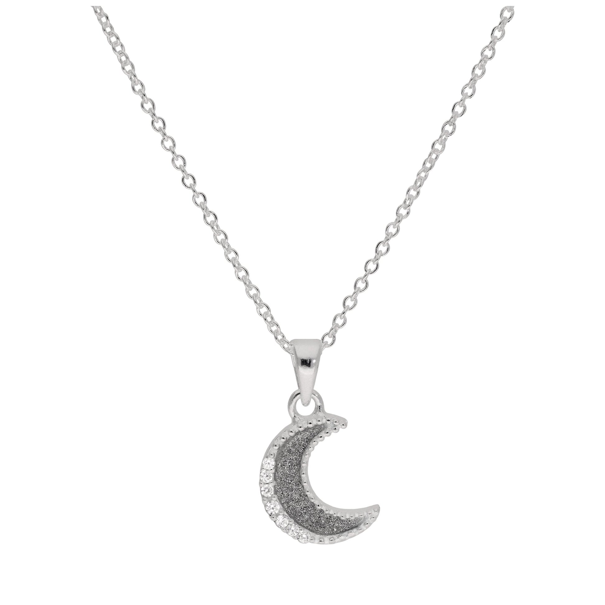 Collier en argent sterling avec lune givrée et zircone cubique transparent - 40 à 81 cm