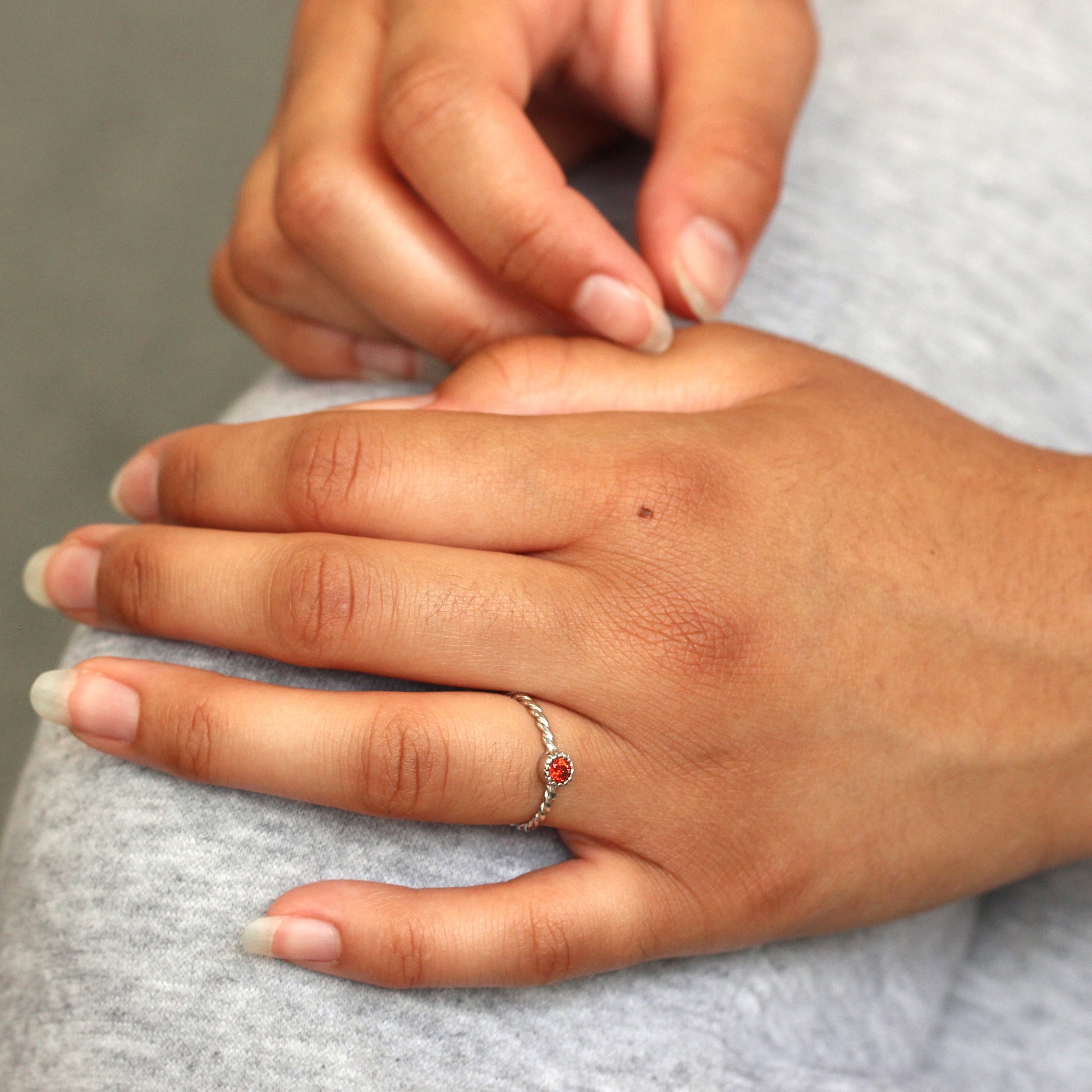 Bague en argent sterling et cristal grenat CZ, pierre de naissance de janvier, corde torsadée I - U