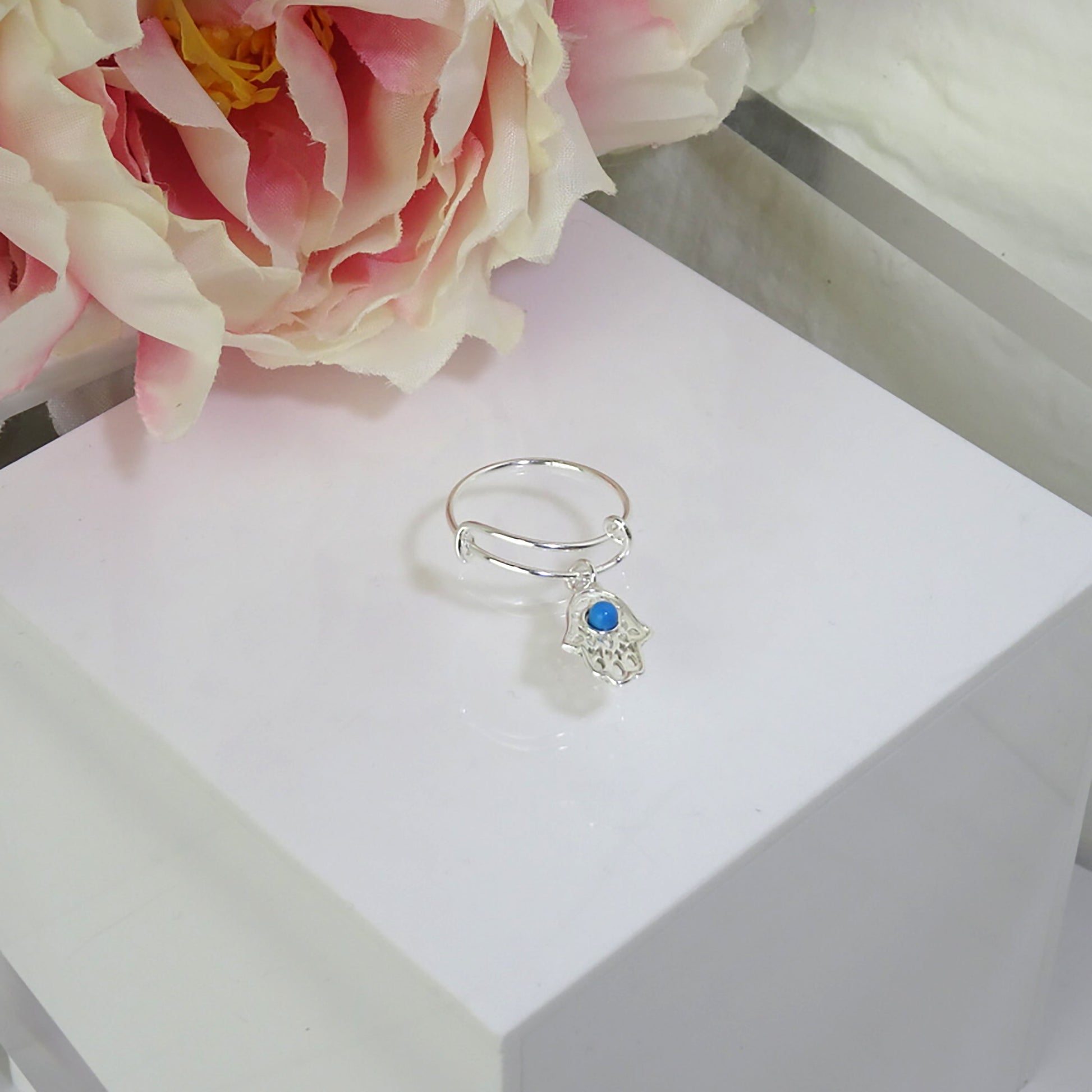 Bague réglable en argent sterling avec perle bleue en forme de main de Fatima