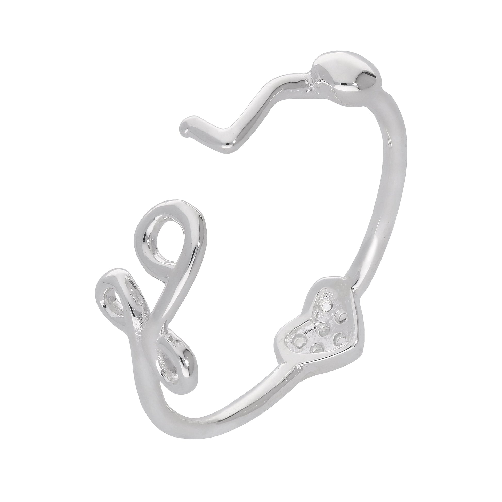 Bague ajustable ouverte en argent sterling avec cœur en zircone cubique transparent