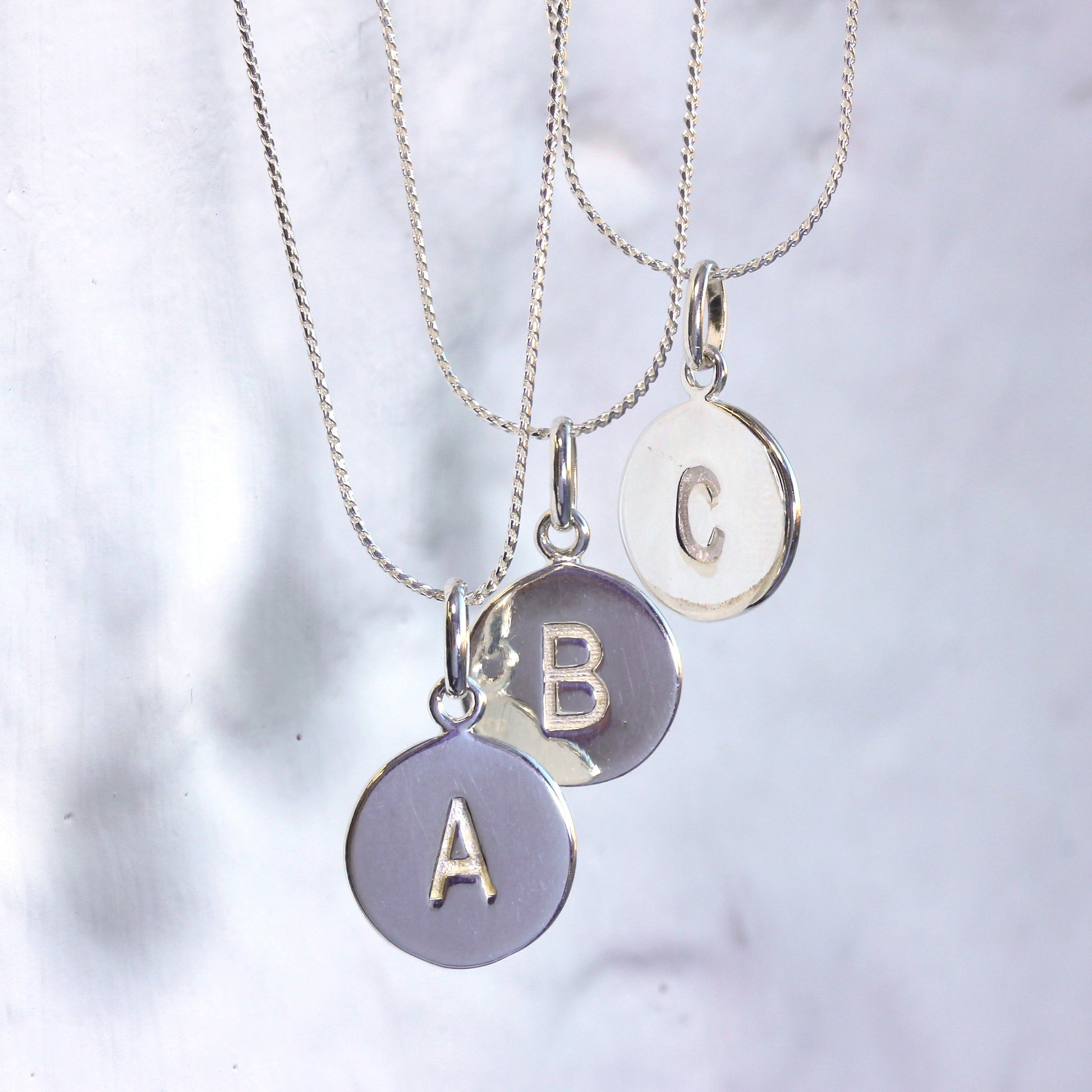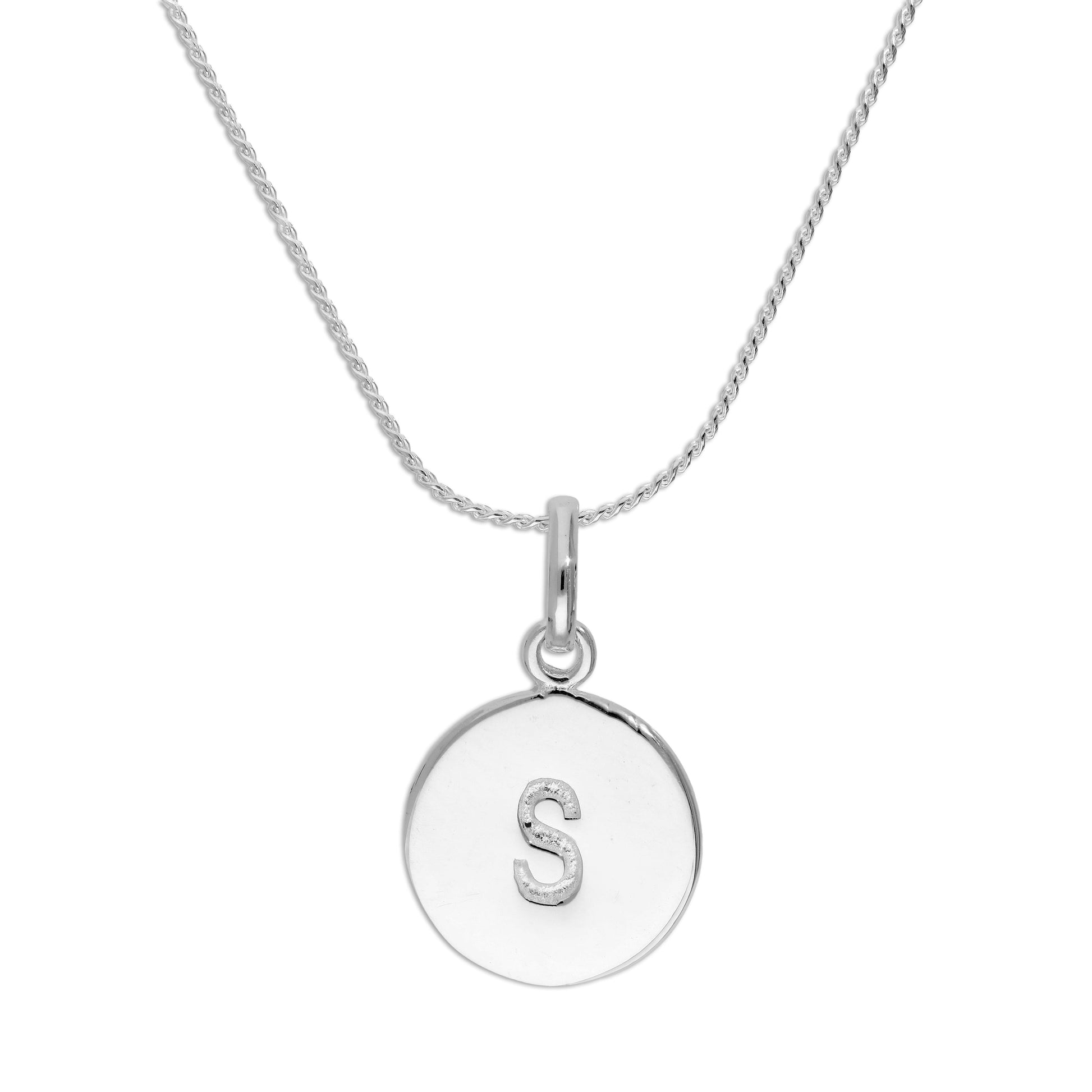 Sterling Silver Initial Letter Necklace A - Z 16 - 22 Inches Plain