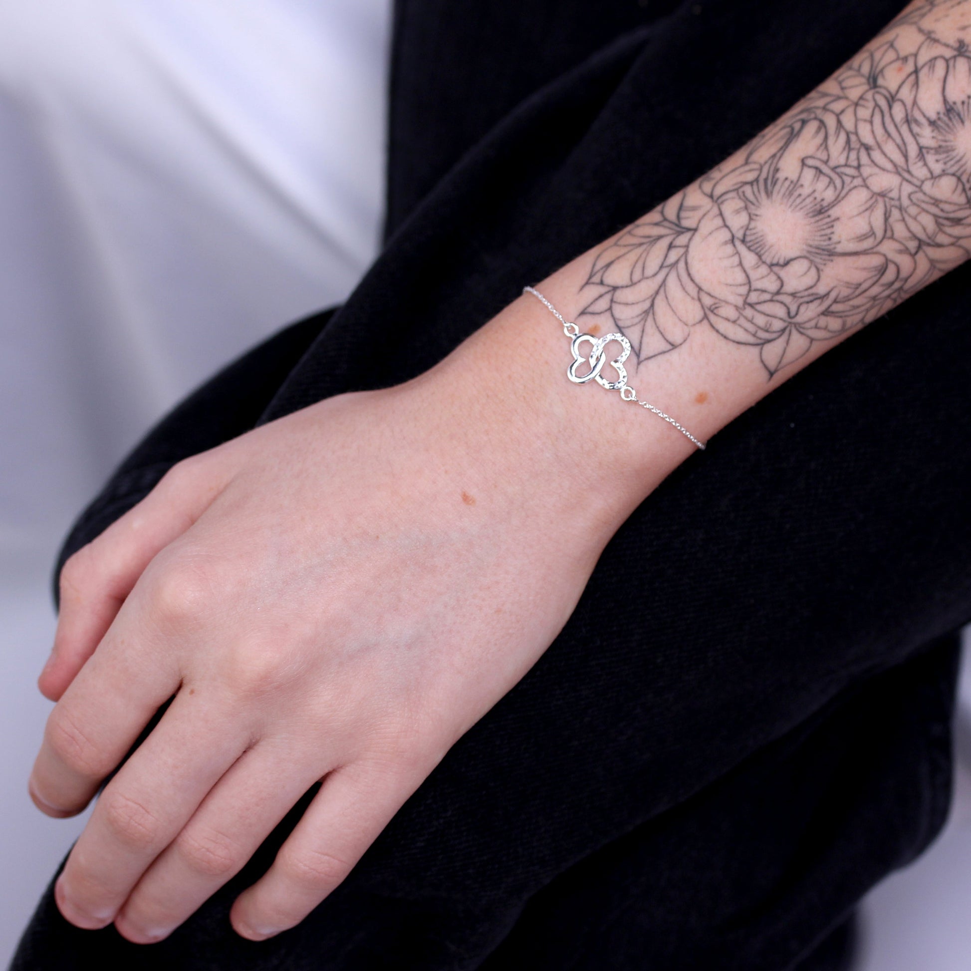 Bracelet en argent sterling avec ailes de cœur et papillon entrelacés