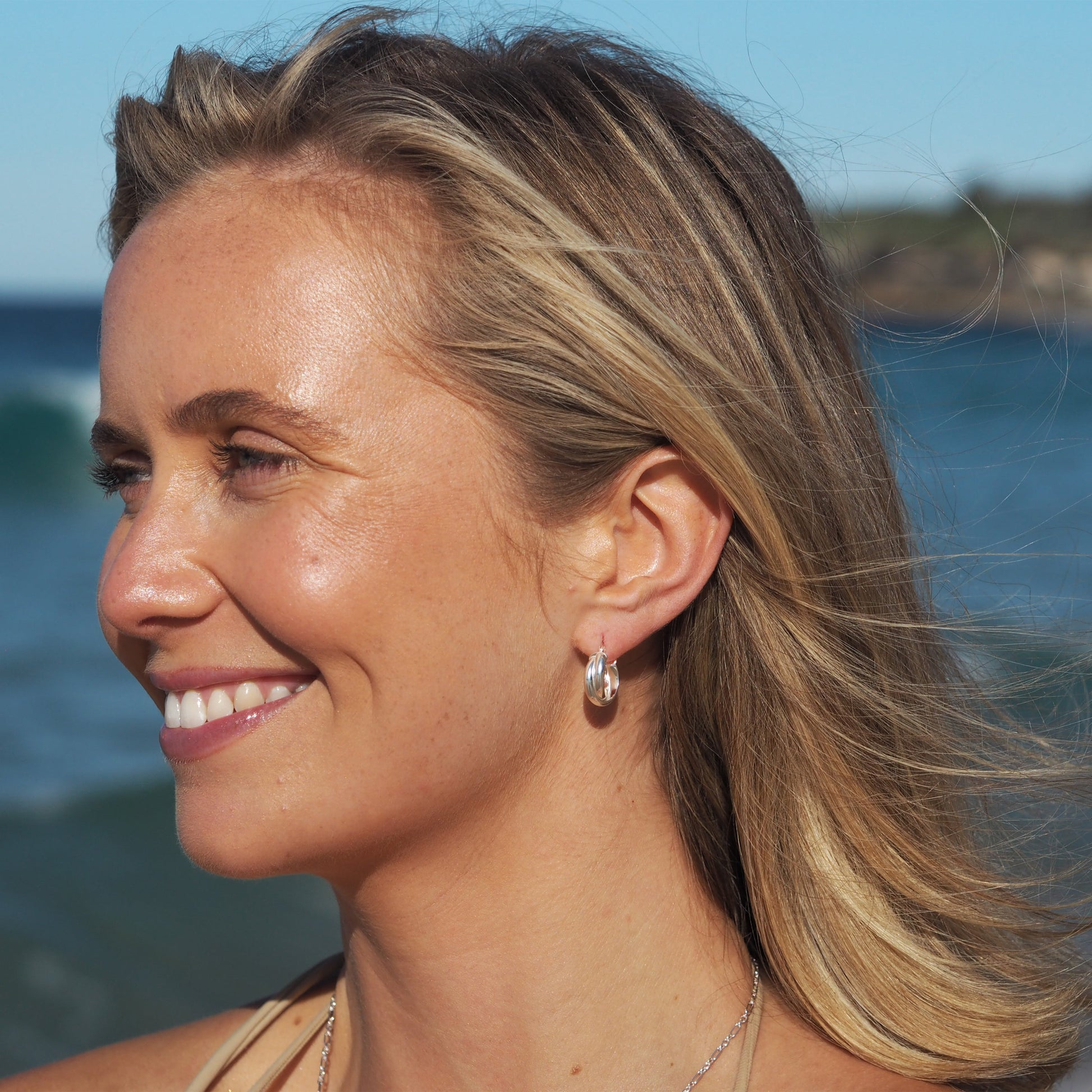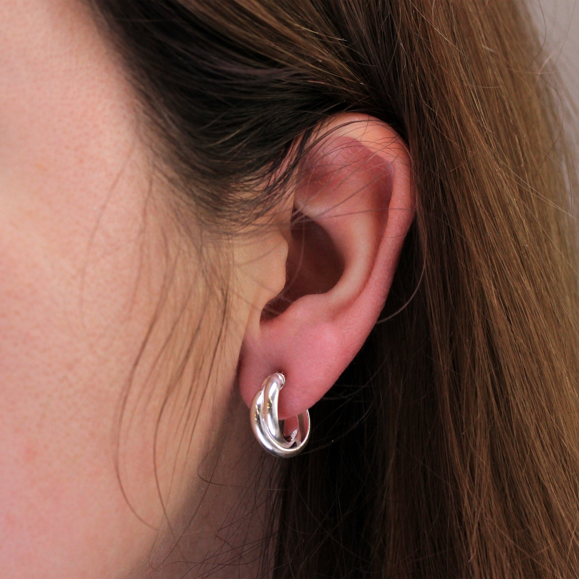 Boucles d'oreilles créoles en argent sterling à double torsion entrelacées
