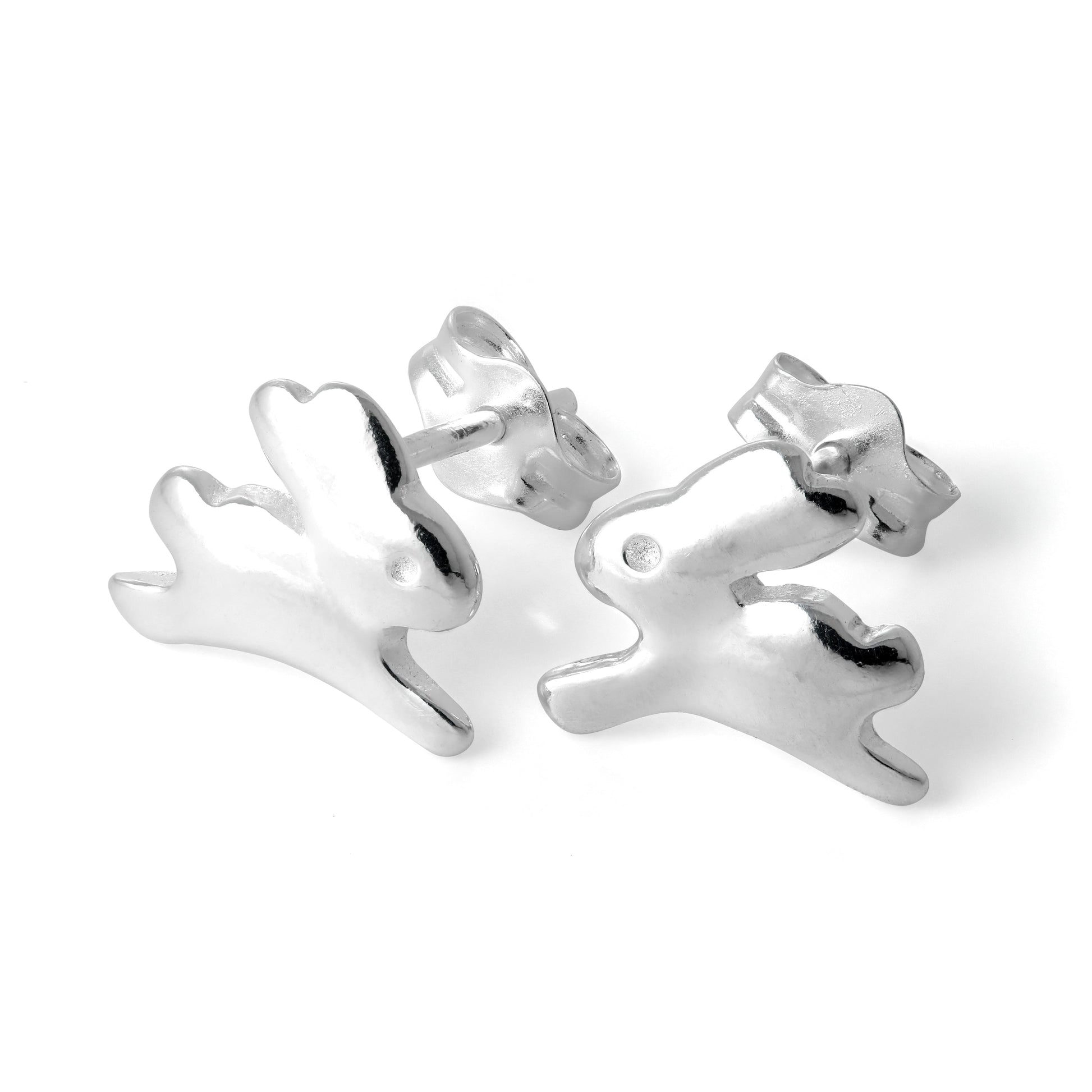 Boucles d'oreilles à tige en argent sterling en forme de lapin sauteur