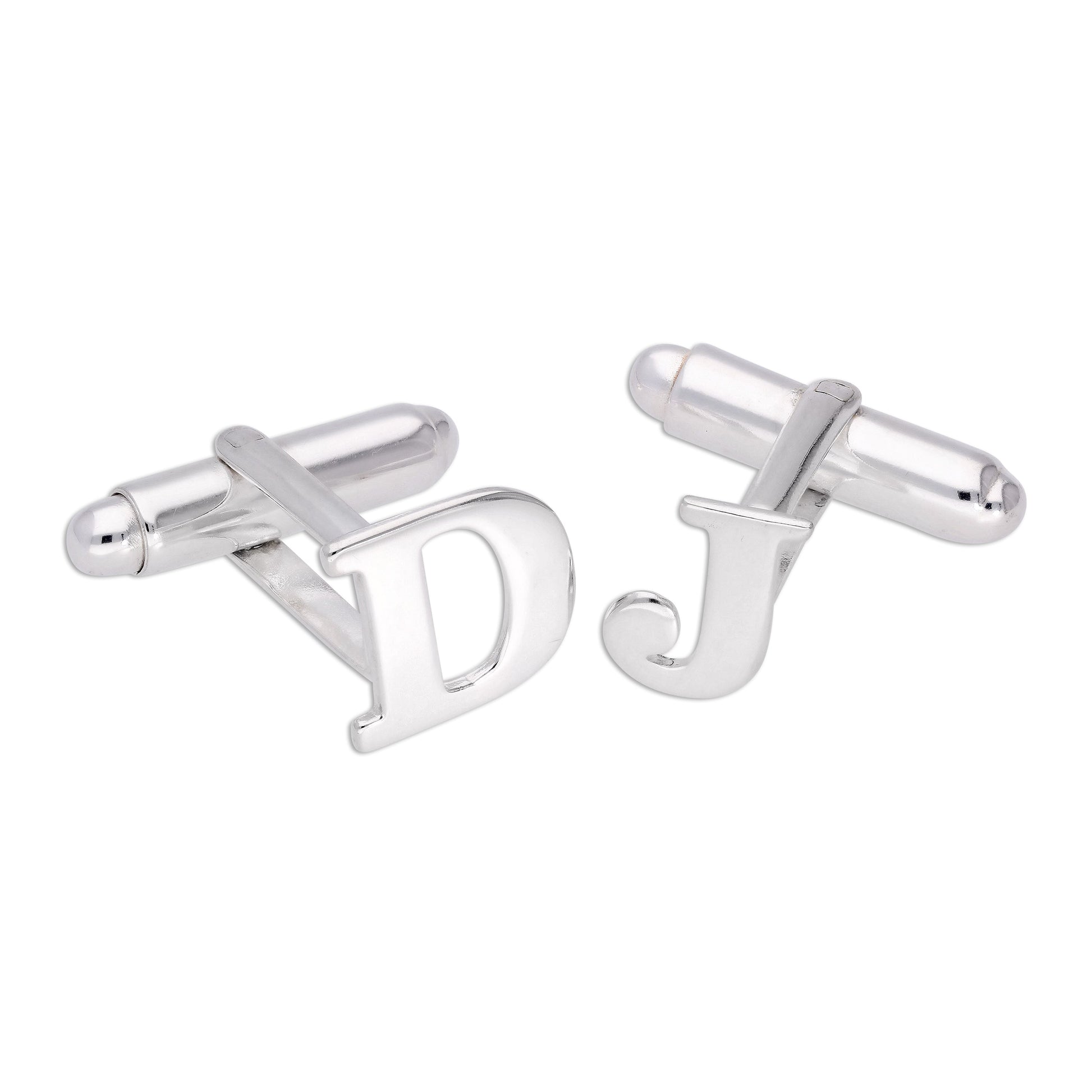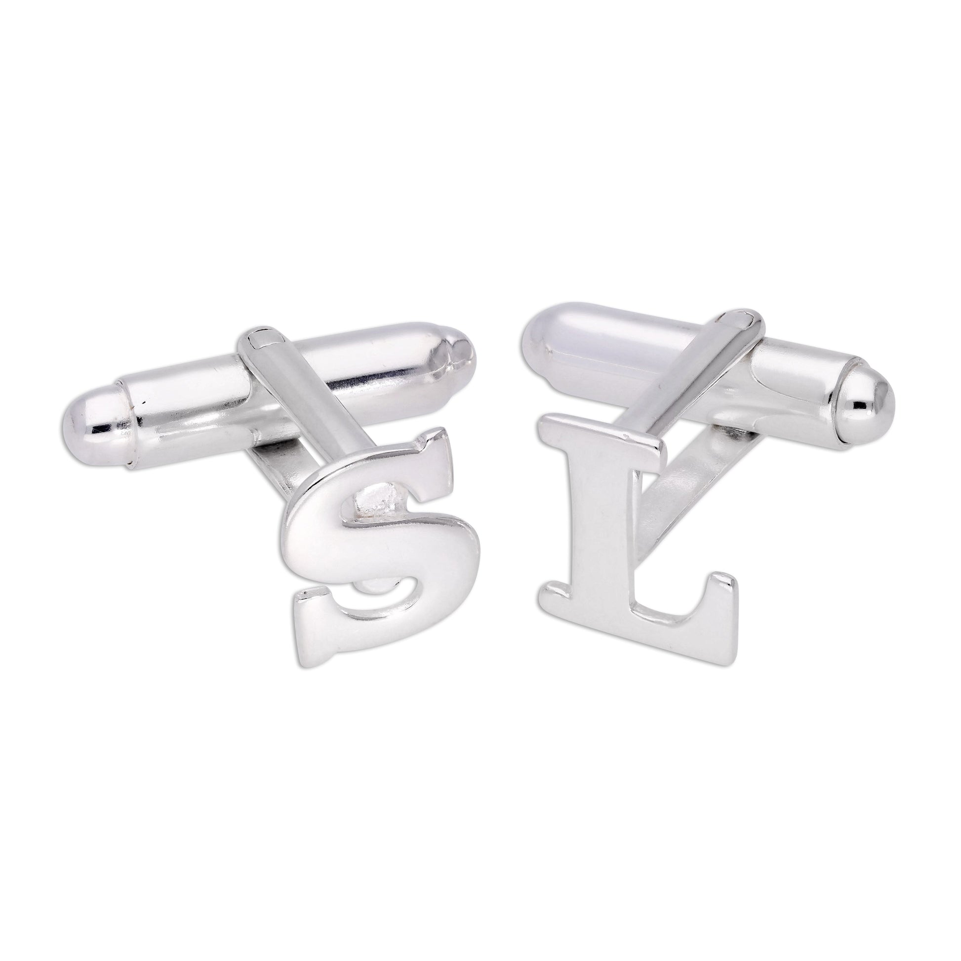 Boutons de manchette pivotants en argent sterling avec lettres de l'alphabet A à Z