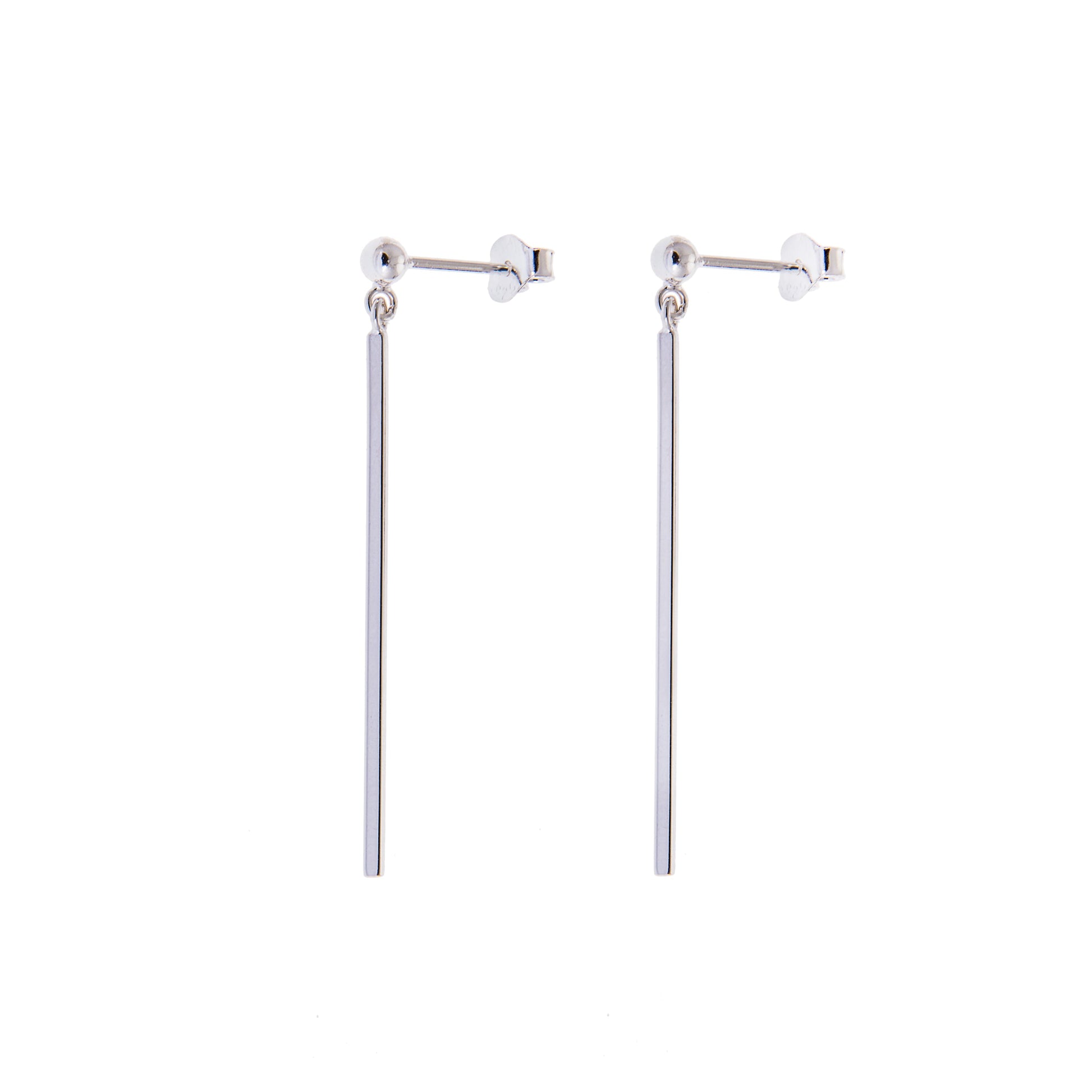 Boucles d'oreilles à tige en argent sterling avec longues barres et boules pendantes