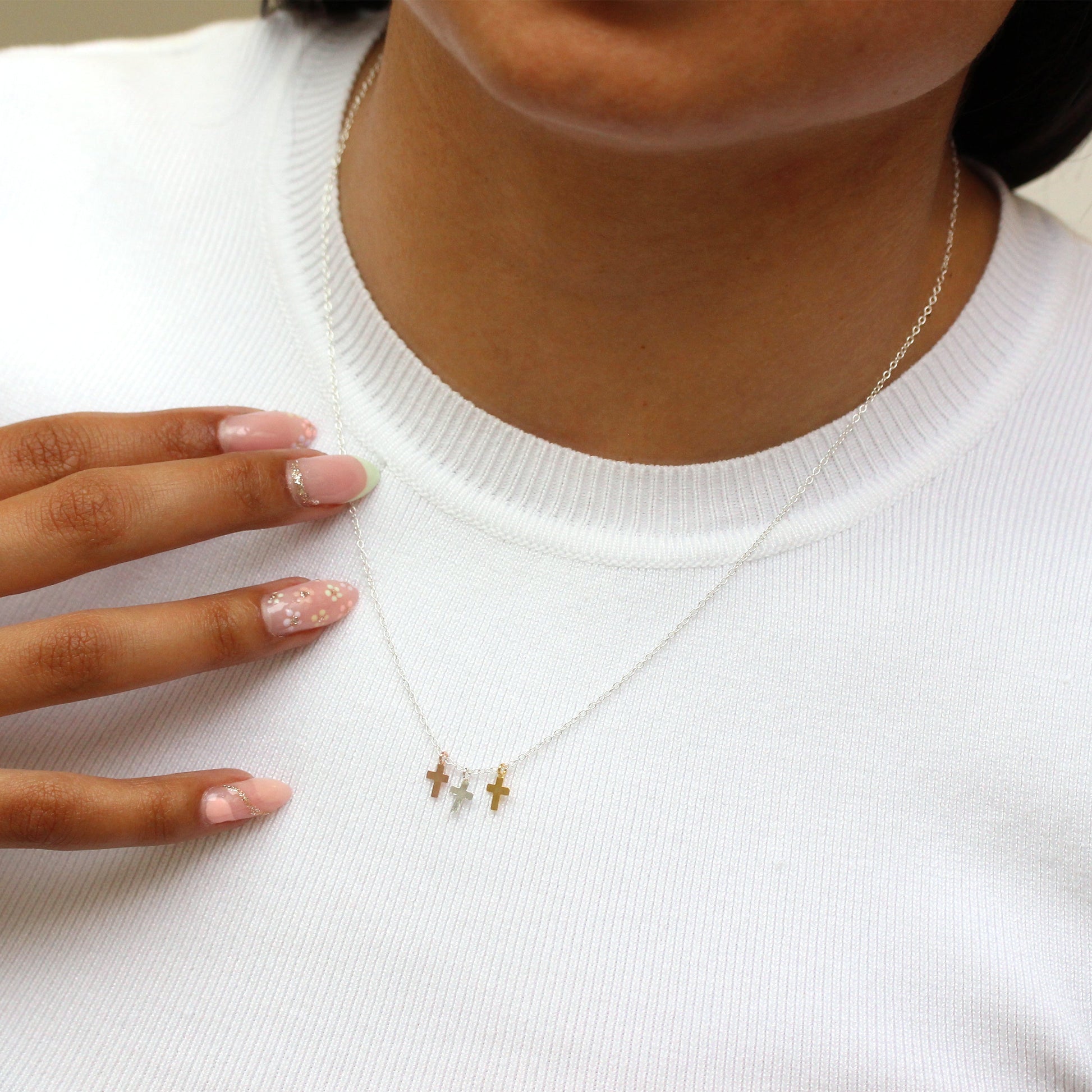 Collier pendentif triple croix en argent sterling plaqué or mixte