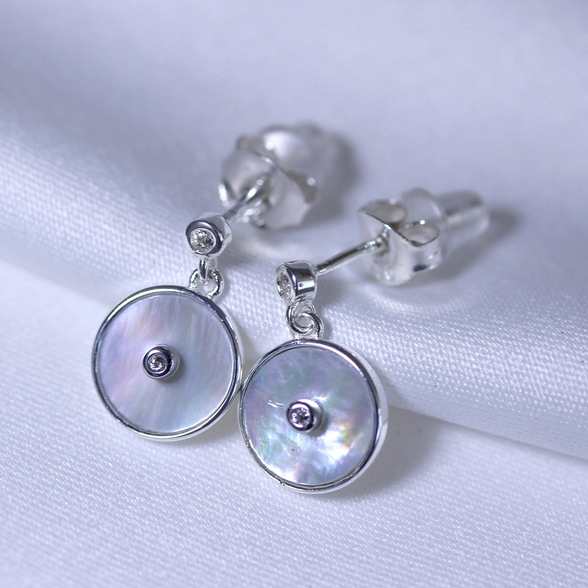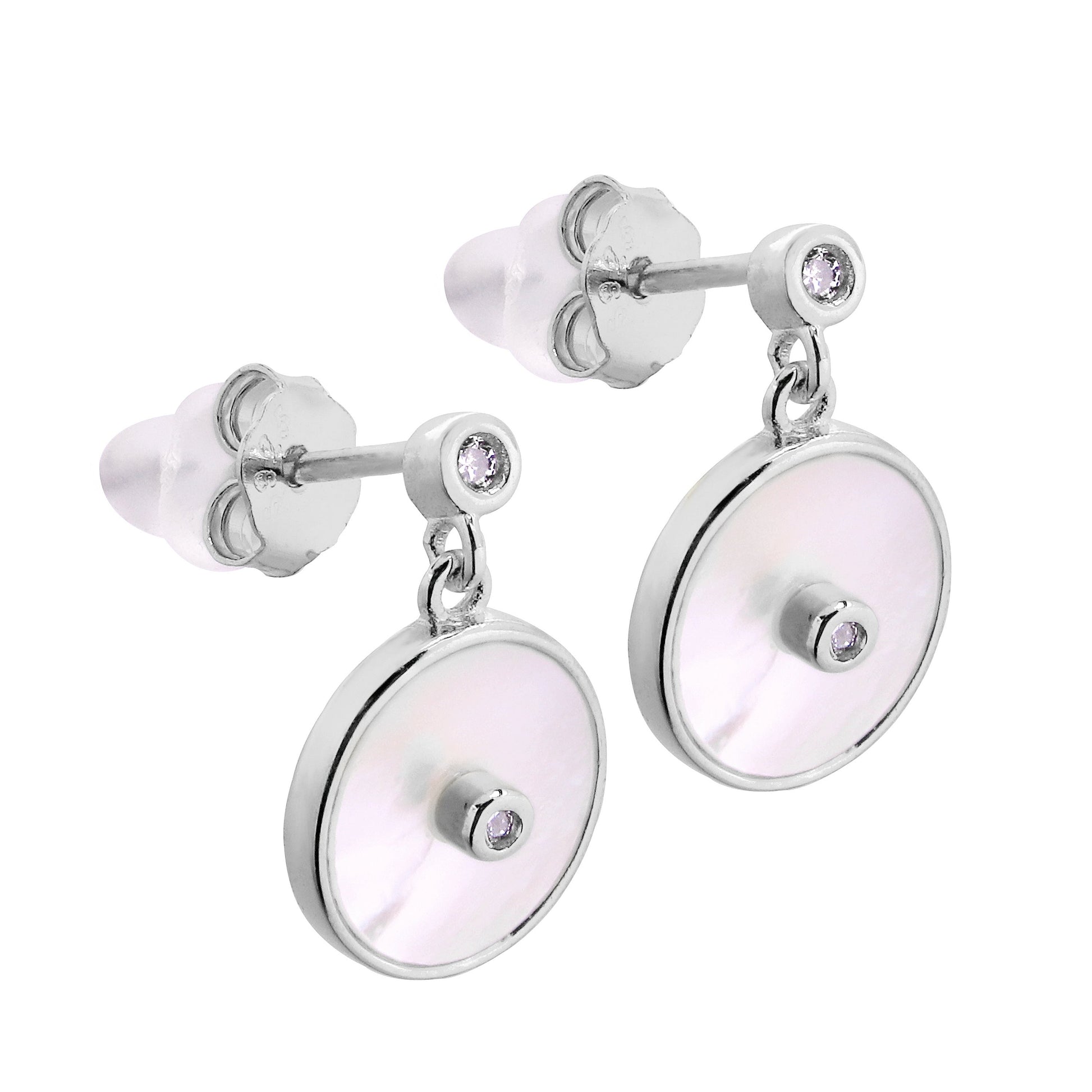 Boucles d'oreilles pendantes rondes en argent sterling, nacre et zircone cubique