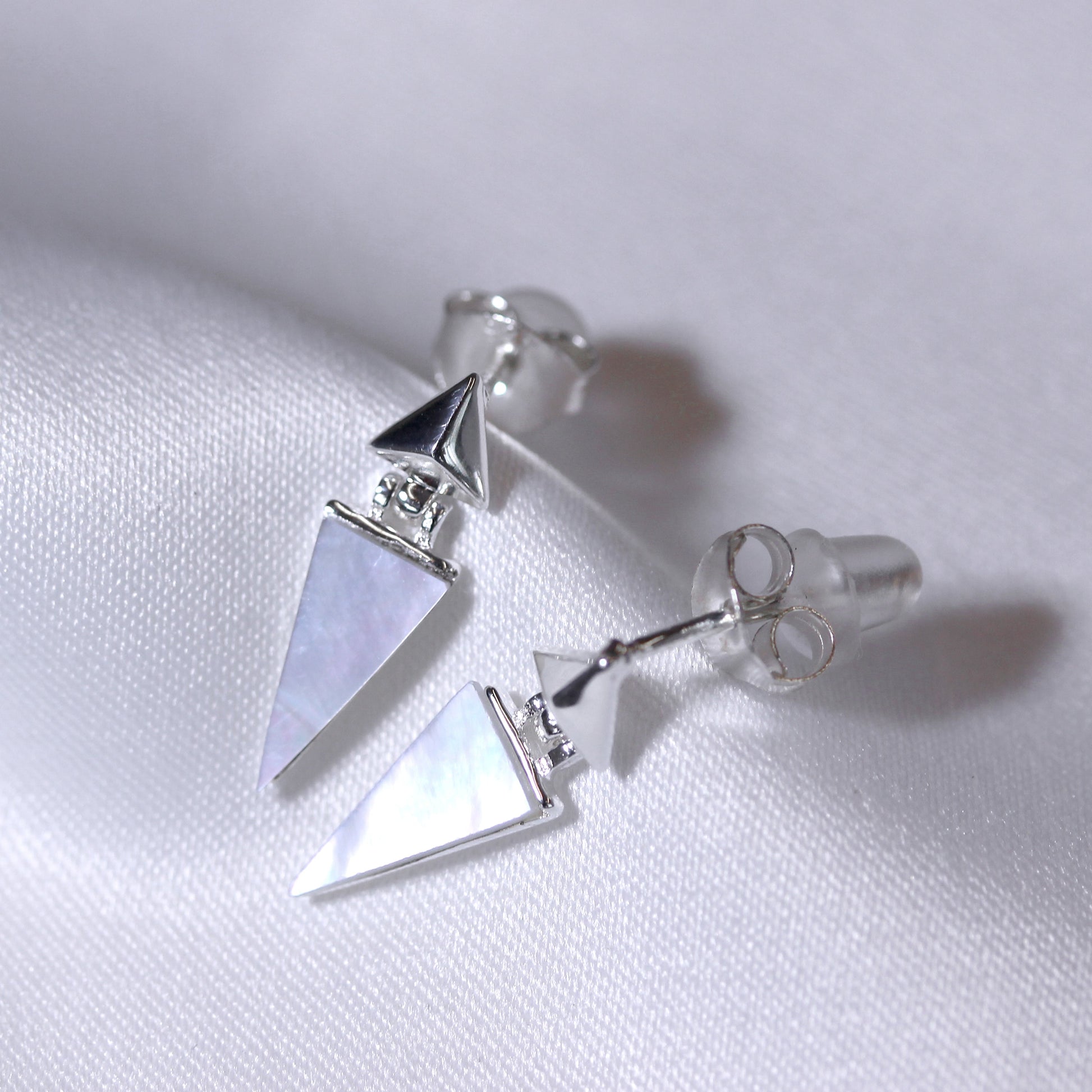Boucles d'oreilles pendantes triangulaires en argent sterling et nacre
