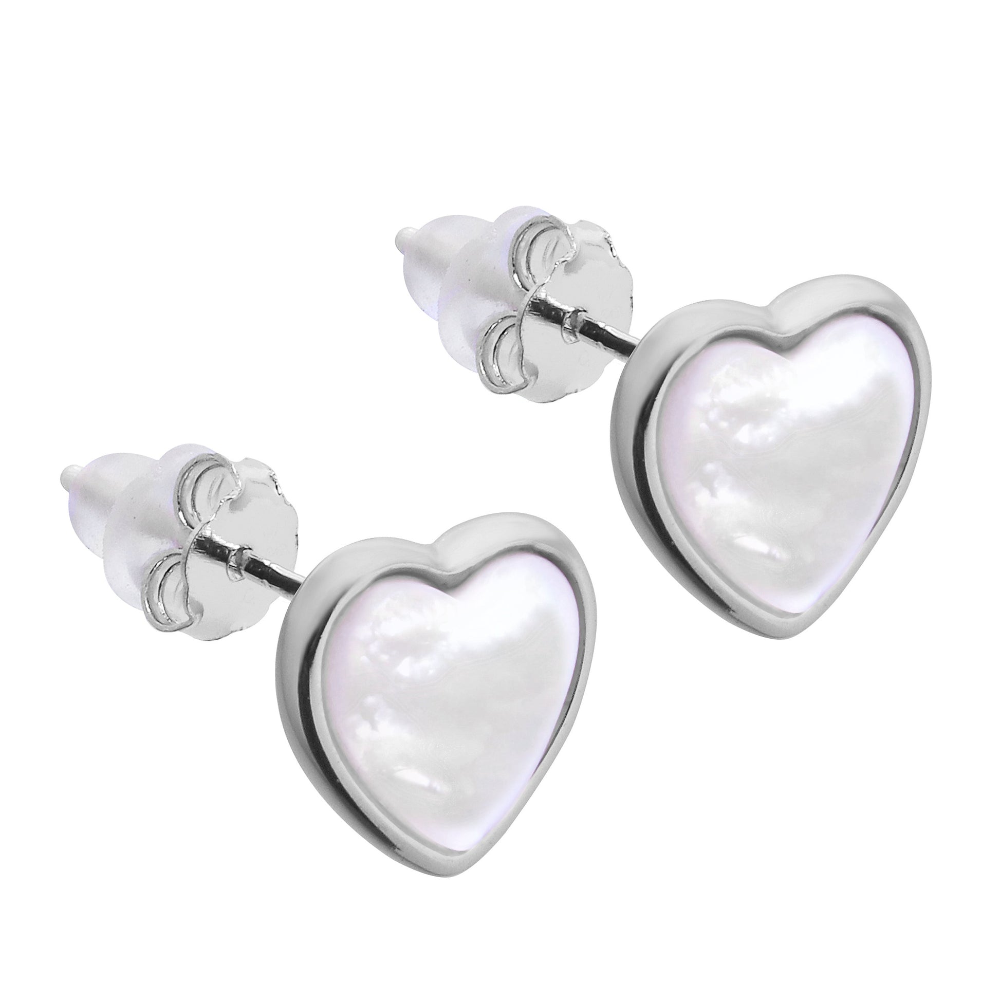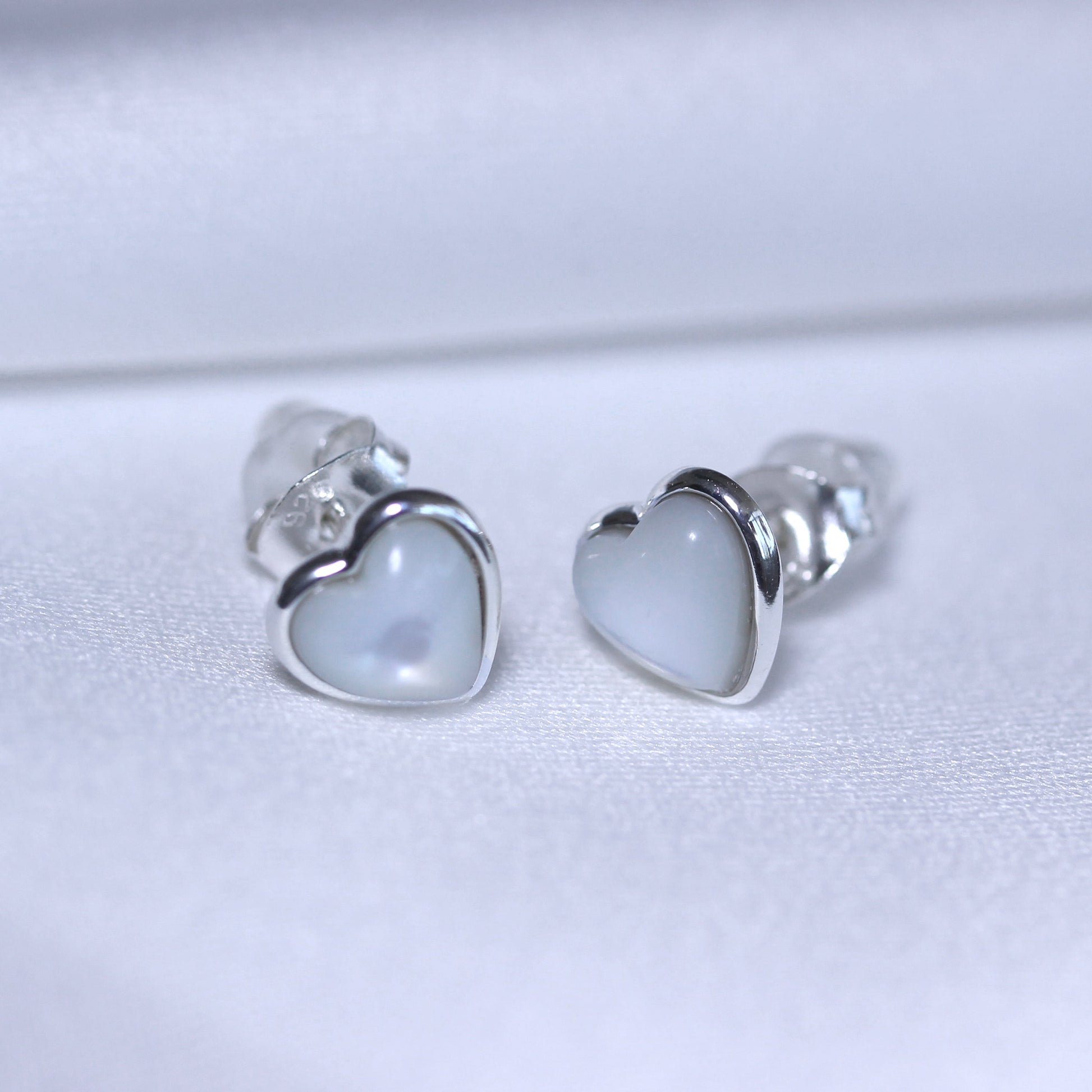 Boucles d'oreilles à tige en argent sterling et nacre en forme de cœur
