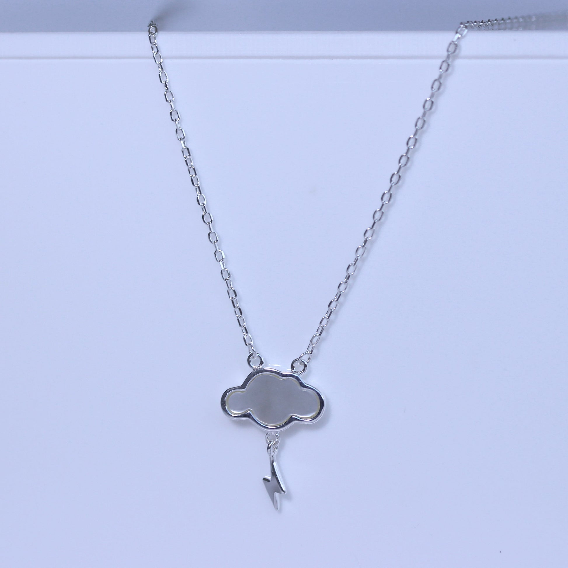 Collier en argent sterling avec nuage éclair et nacre