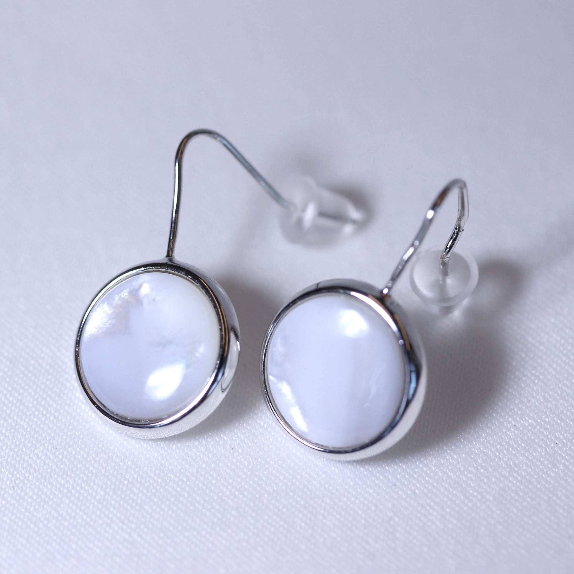 Boucles d'oreilles pendantes rondes en argent sterling et nacre
