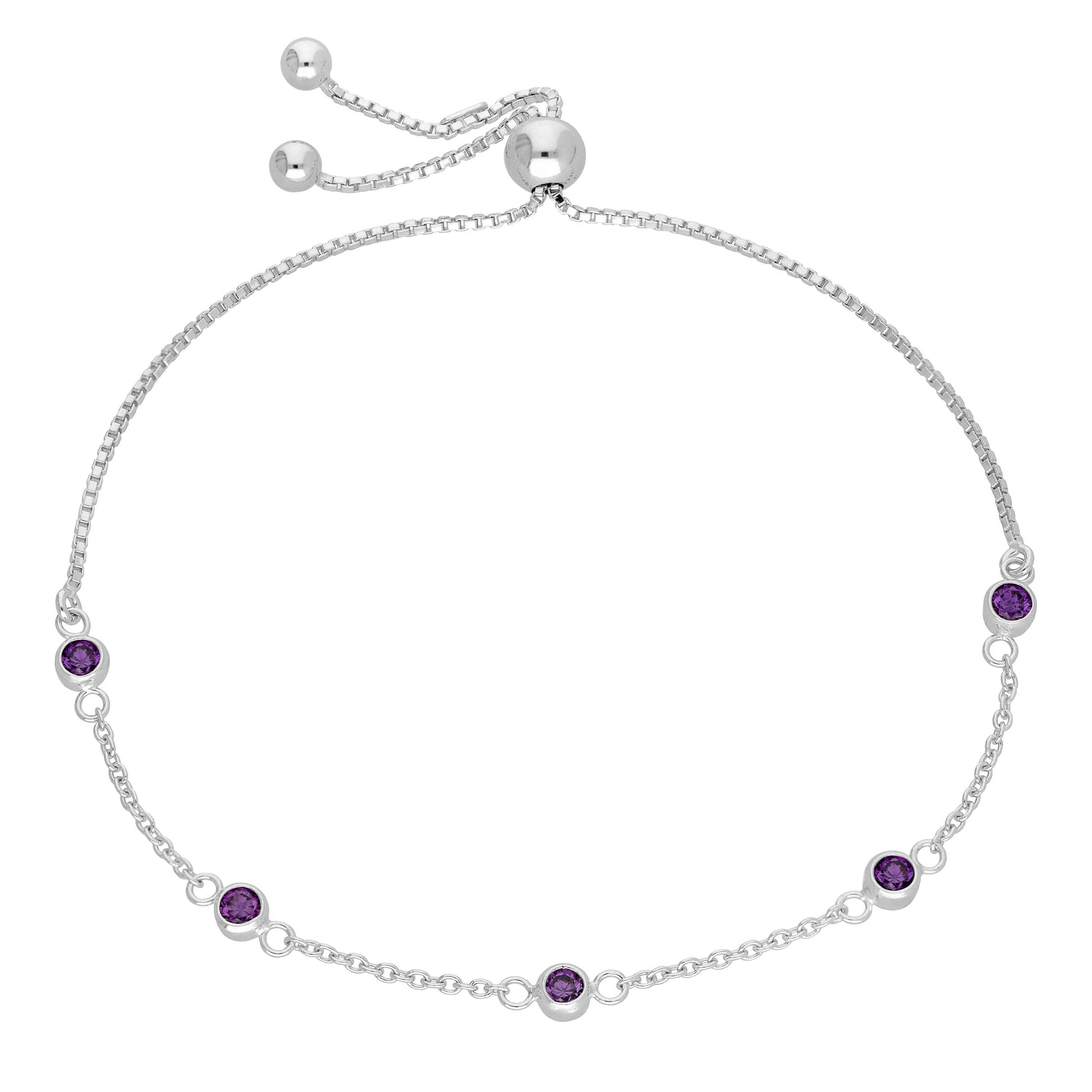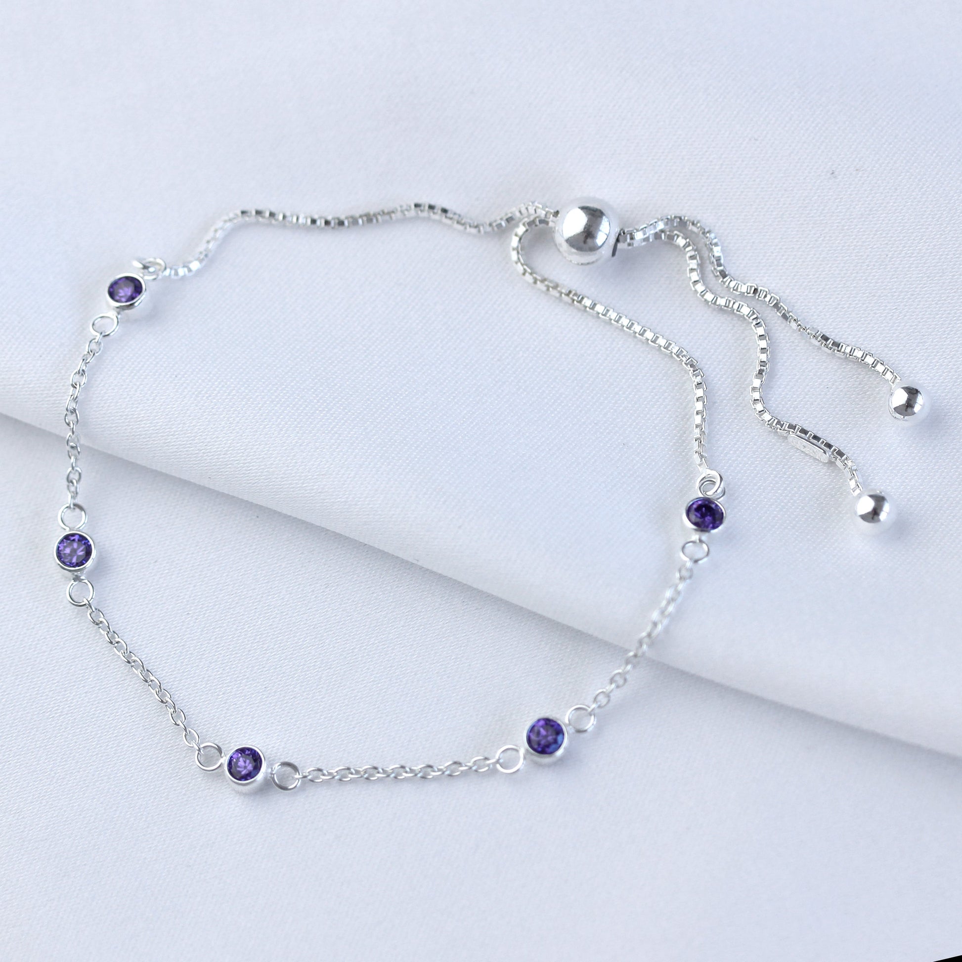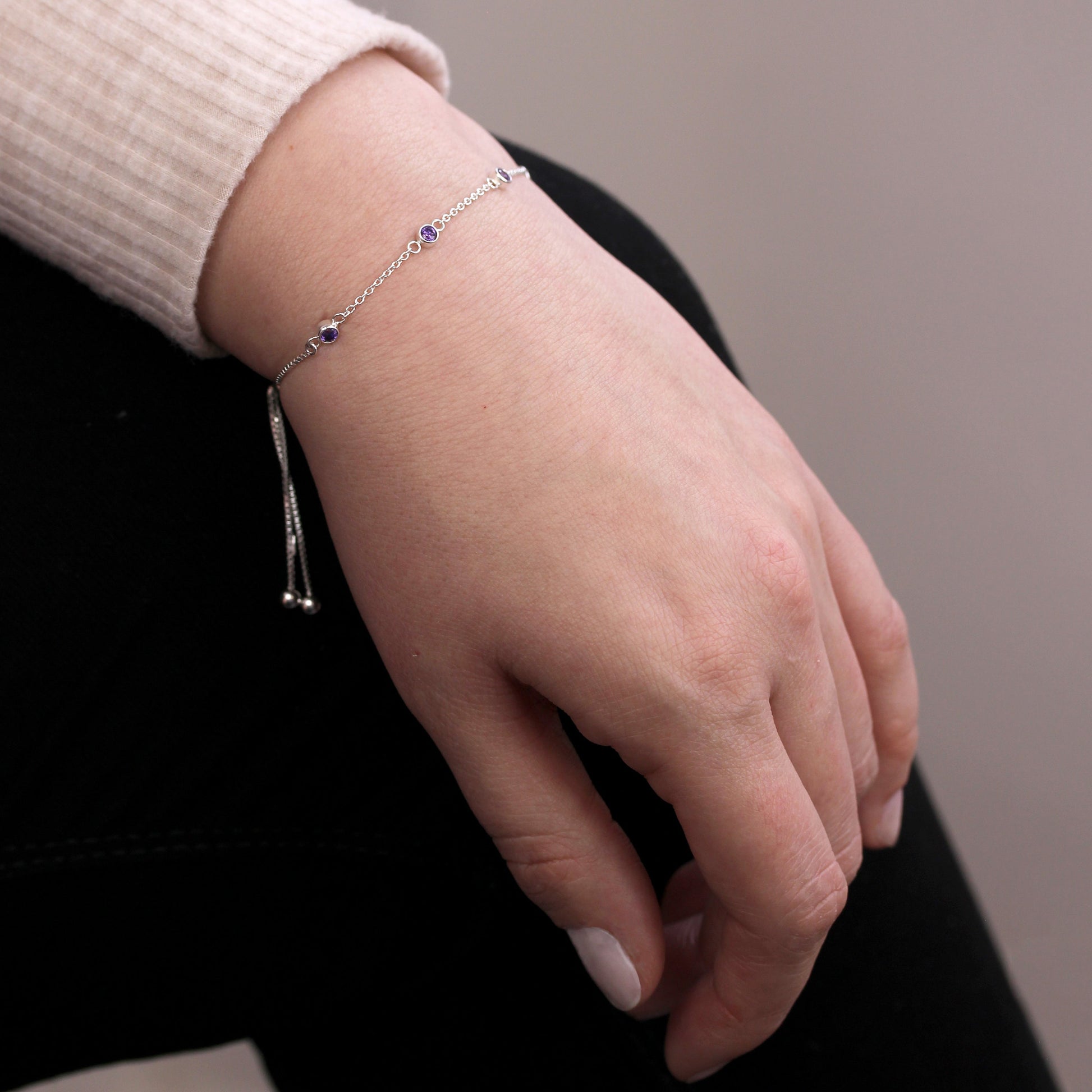 Bracelet réglable en argent sterling avec plusieurs améthystes et zircones cubiques