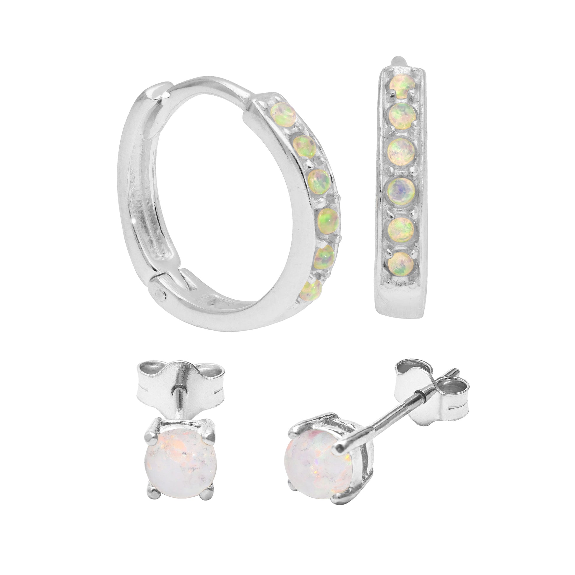 Ensemble de boucles d'oreilles créoles en argent sterling avec opale CZ 15 mm et clous d'oreilles 4 mm