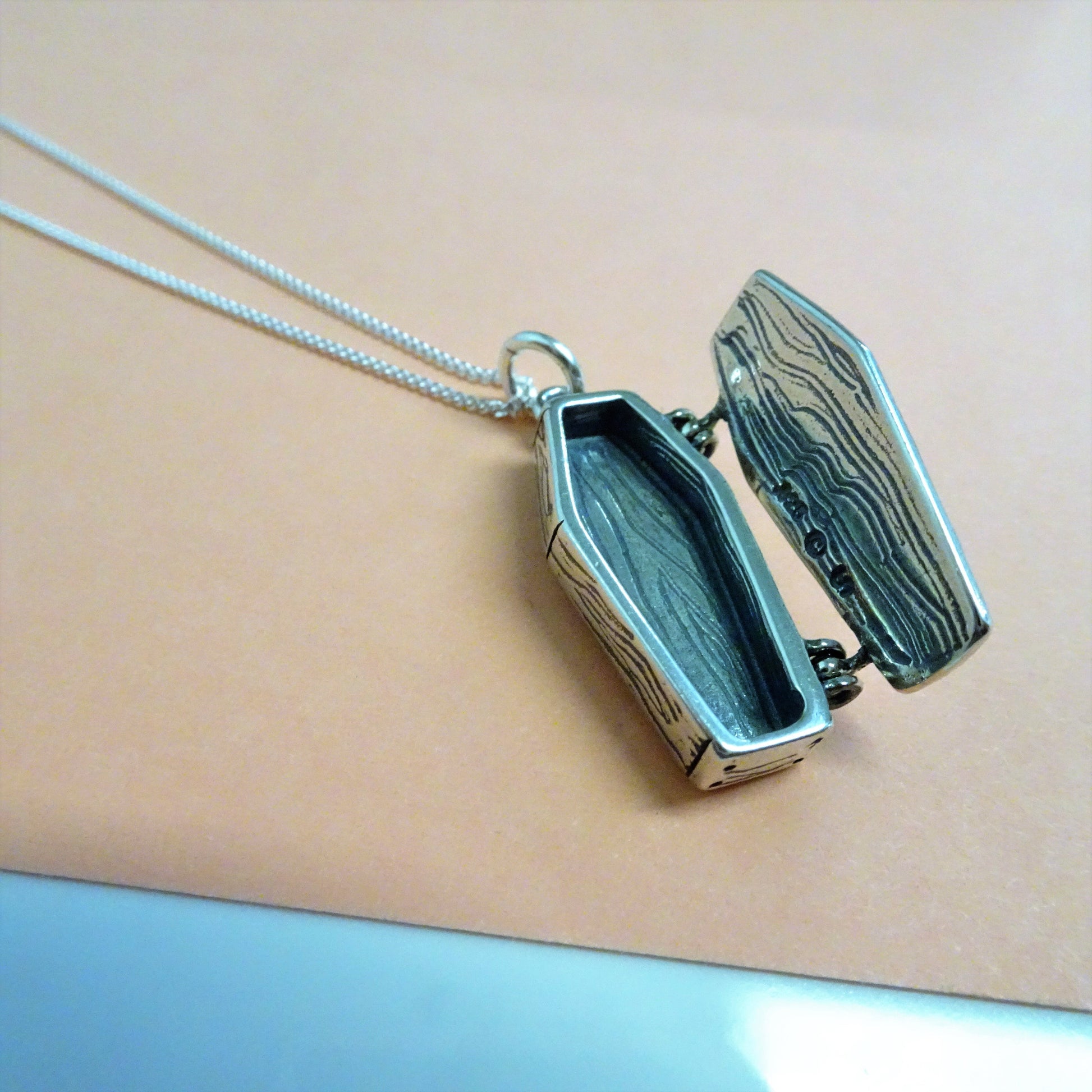 Collier cercueil ouvrant en argent sterling