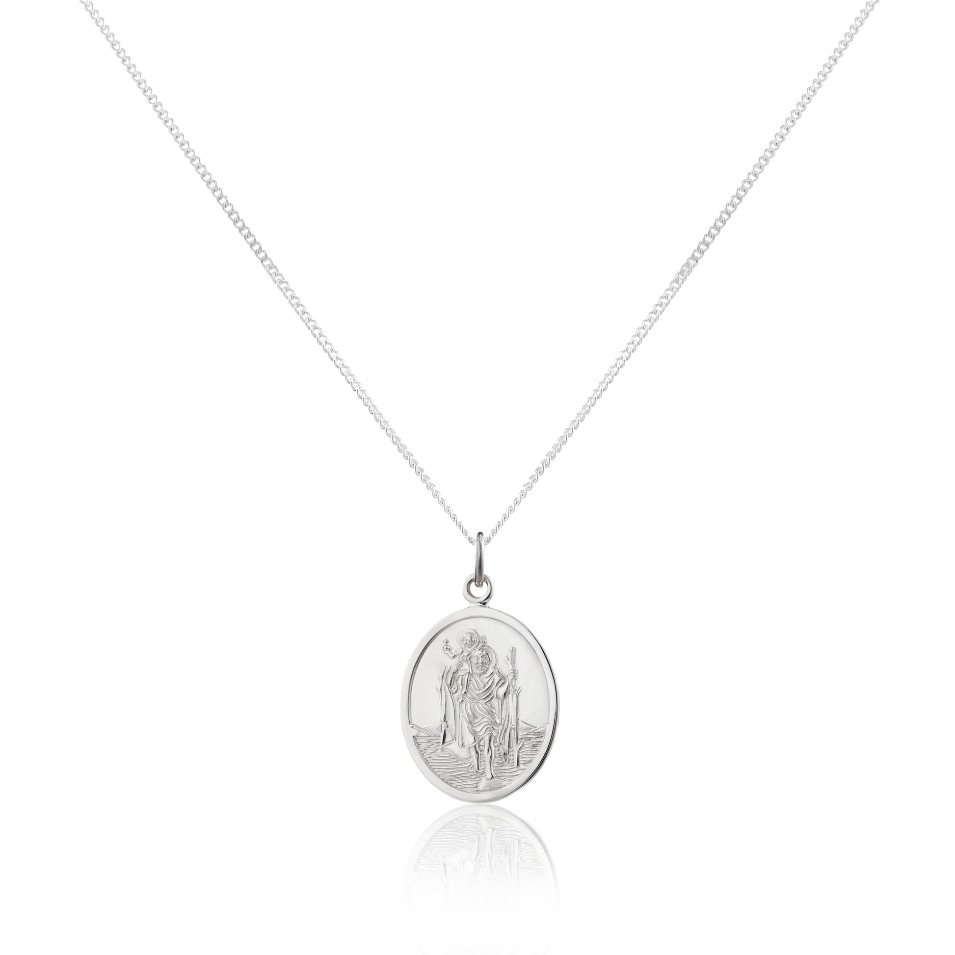 Pendentif ovale Saint-Christophe en argent sterling - 40 à 61 cm