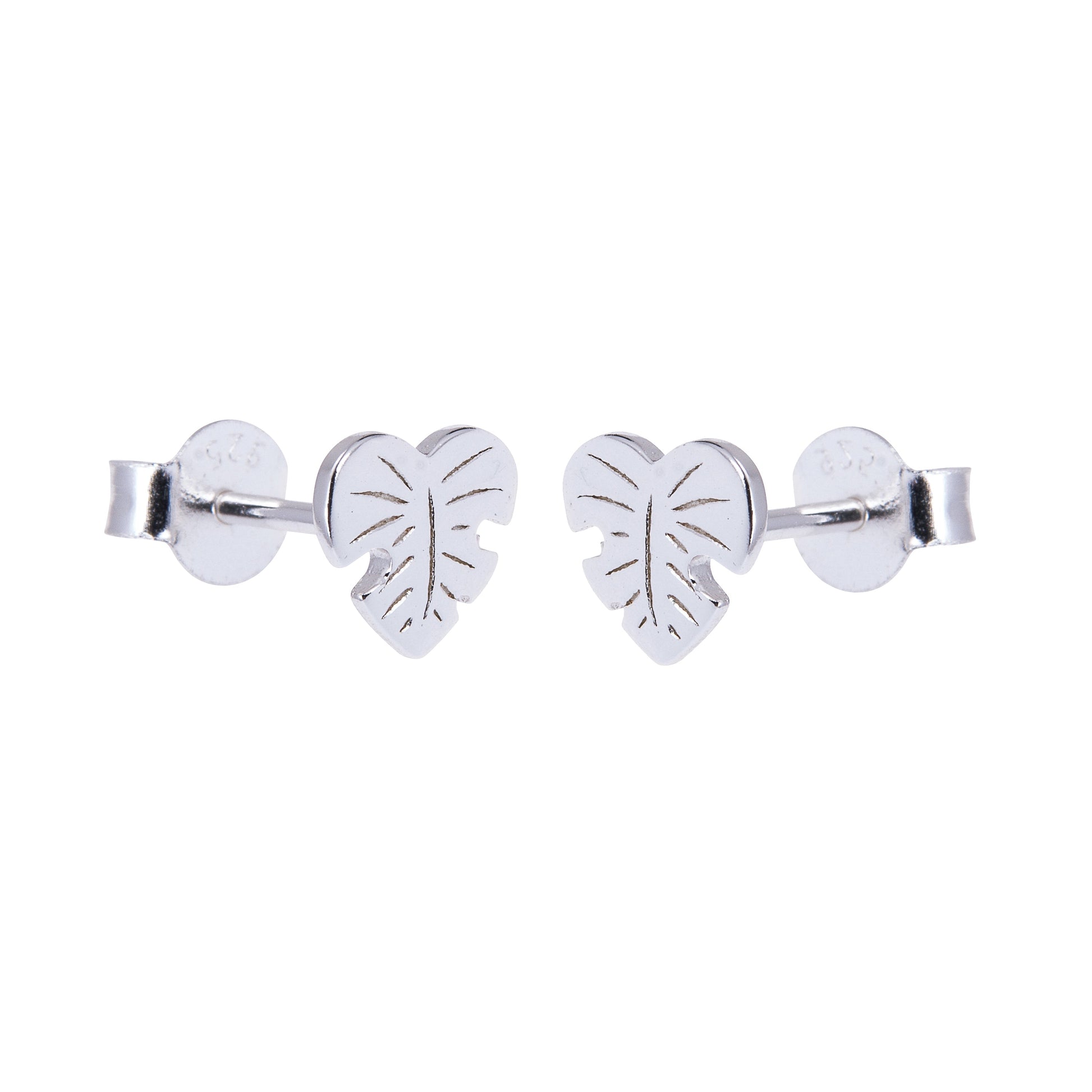 Boucles d'oreilles à tige en argent sterling en forme de cœur et de feuille de palmier