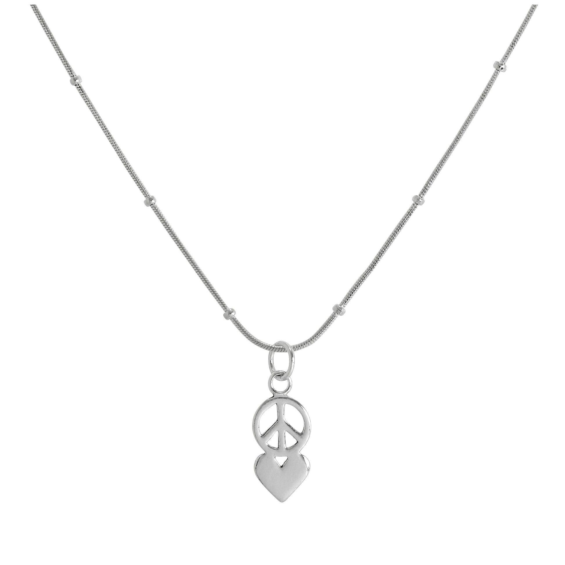 Collier avec pendentif symbole de paix et cœur en argent sterling, 40 à 61 cm